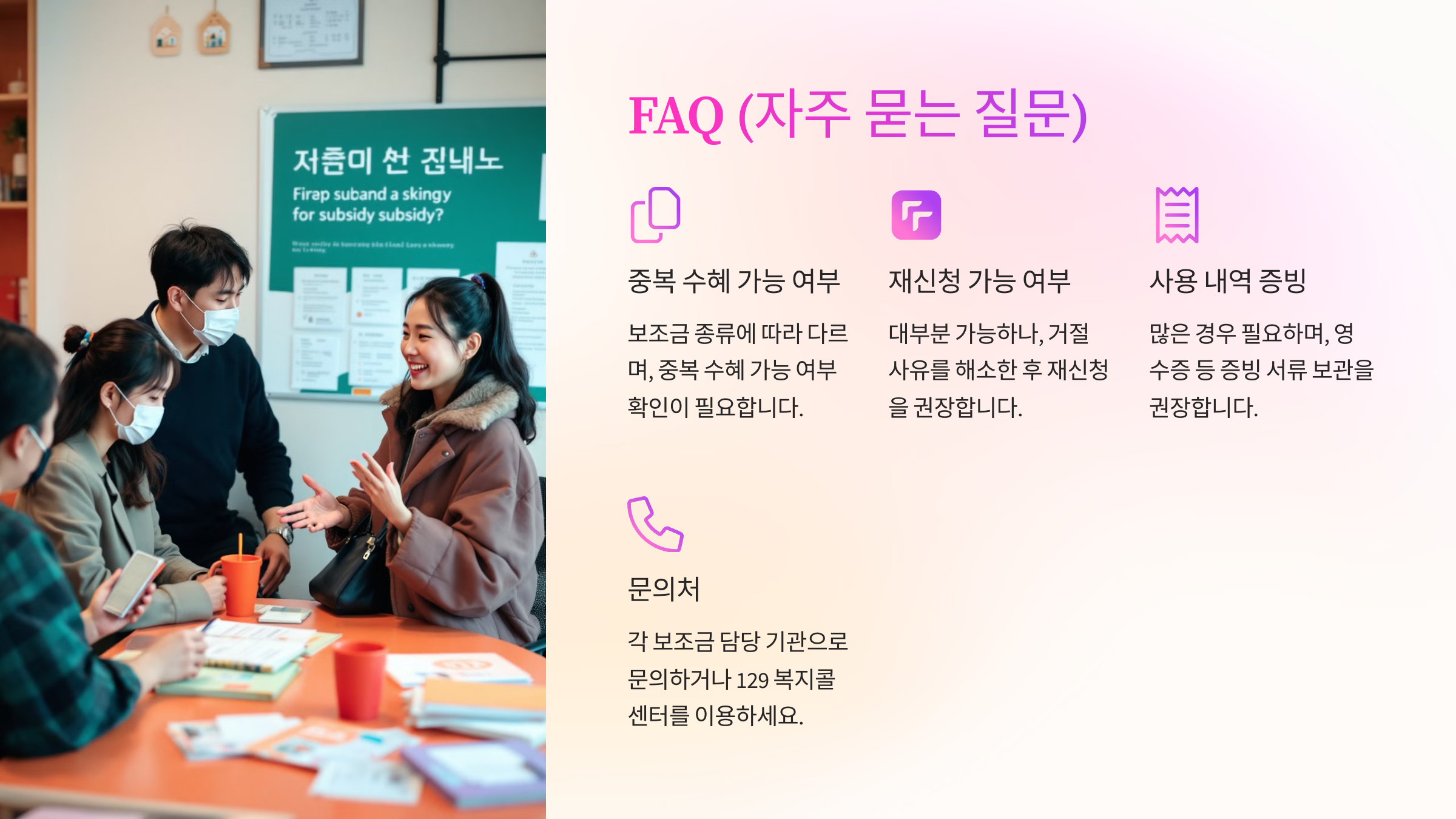 보조금 신청 과정에서 의외로 많은 분들이 사소한 실수로 신청이 반려되거나, 지급이 지연돼요.