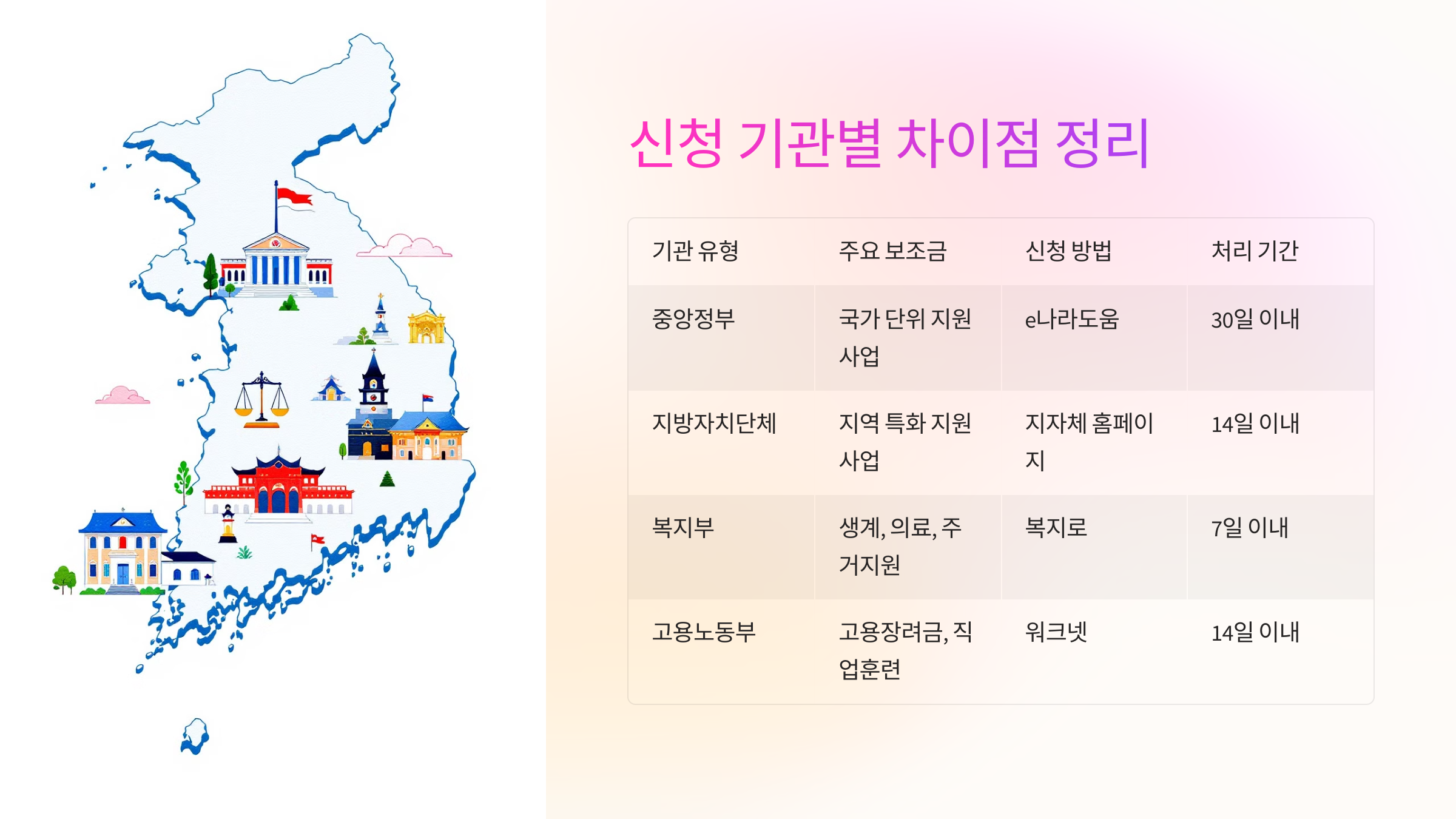 💡 그래서 신청 대상, 지원 금액, 제출 서류 등이 기관마다 조금씩 다르다는 점을 꼭 알고 있어야 해요!