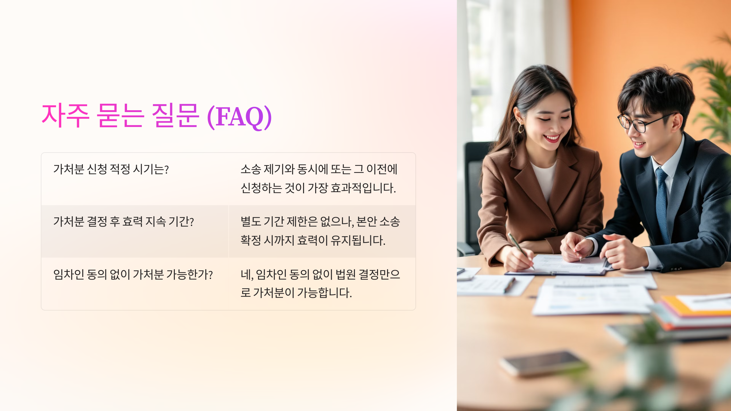 A3. 네, 명도 소송과 함께 가처분을 신청해야 강제집행 시 문제가 발생하지 않아요.