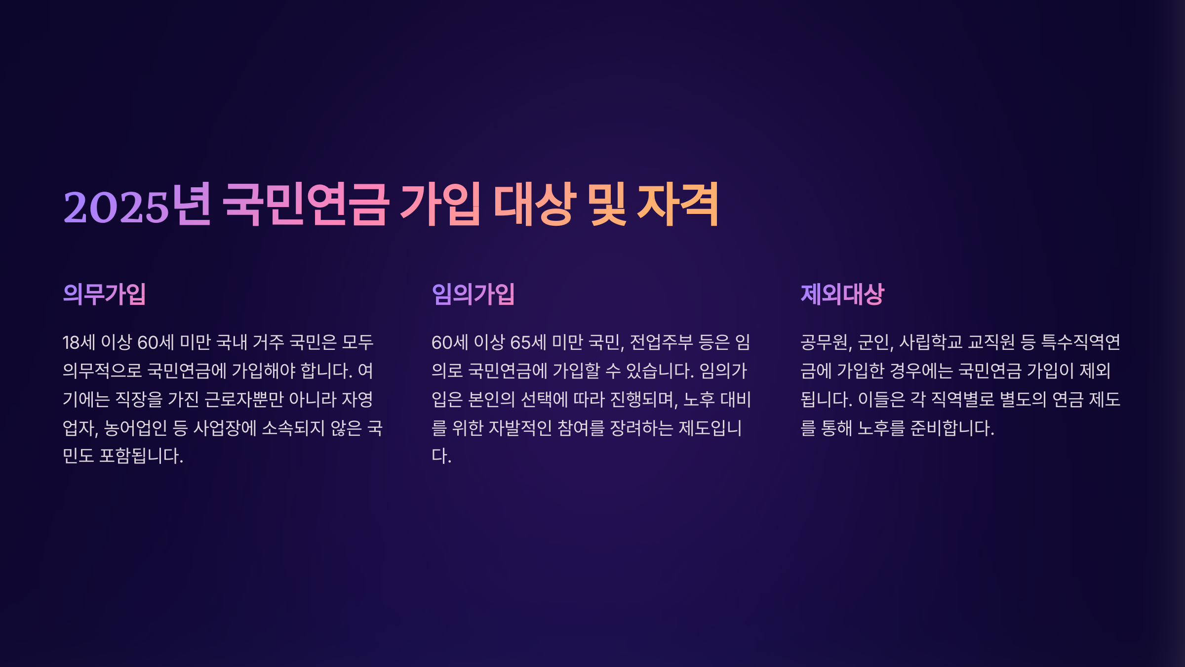 이제 2025년 국민연금 가입 대상 및 자격에 대해 자세히 알아볼까요? 😊