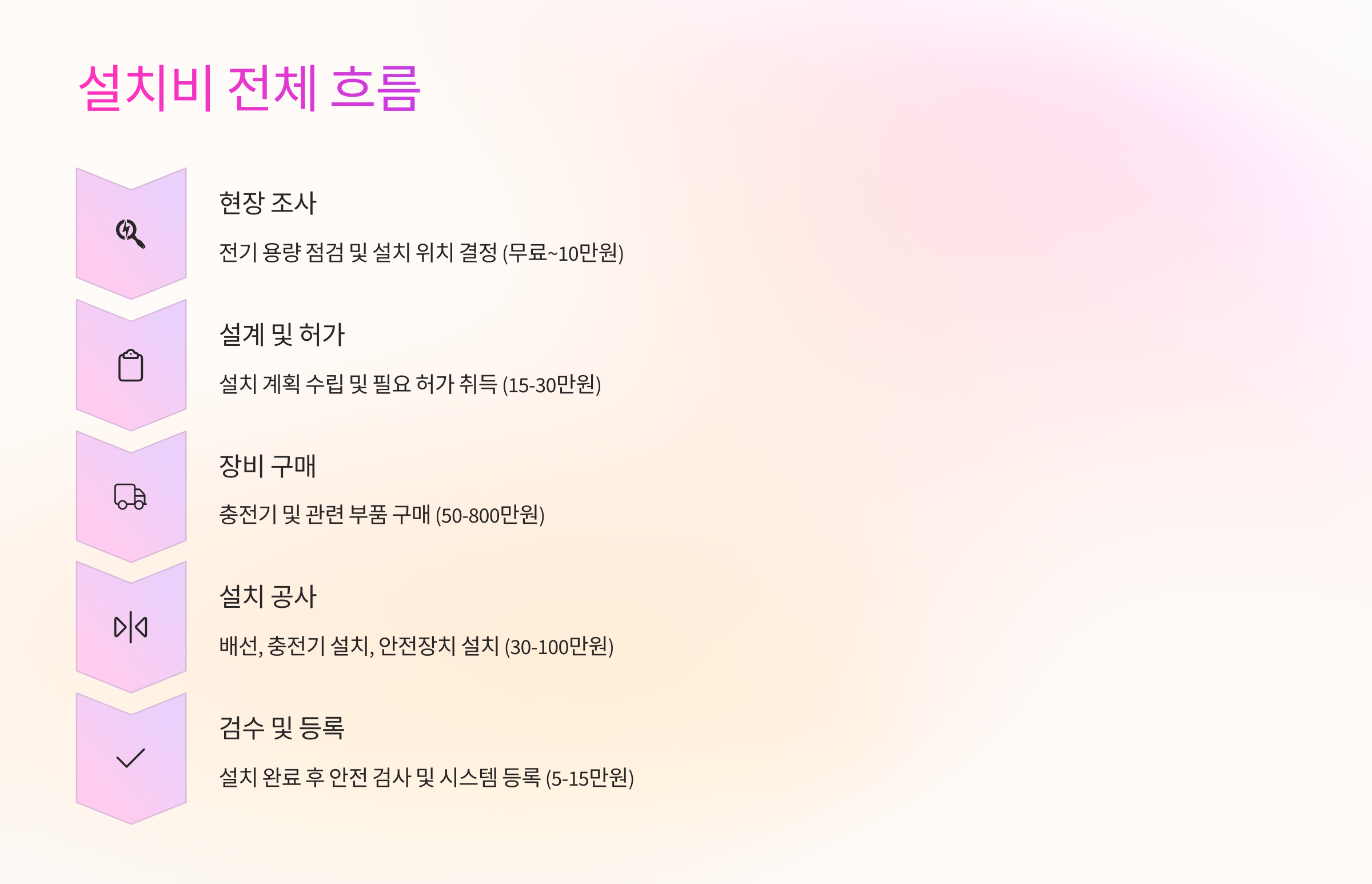 지금까지 전기차 충전기 설치 과정에서 발생하는 모든 비용 흐름을 요약 정리해볼게요.