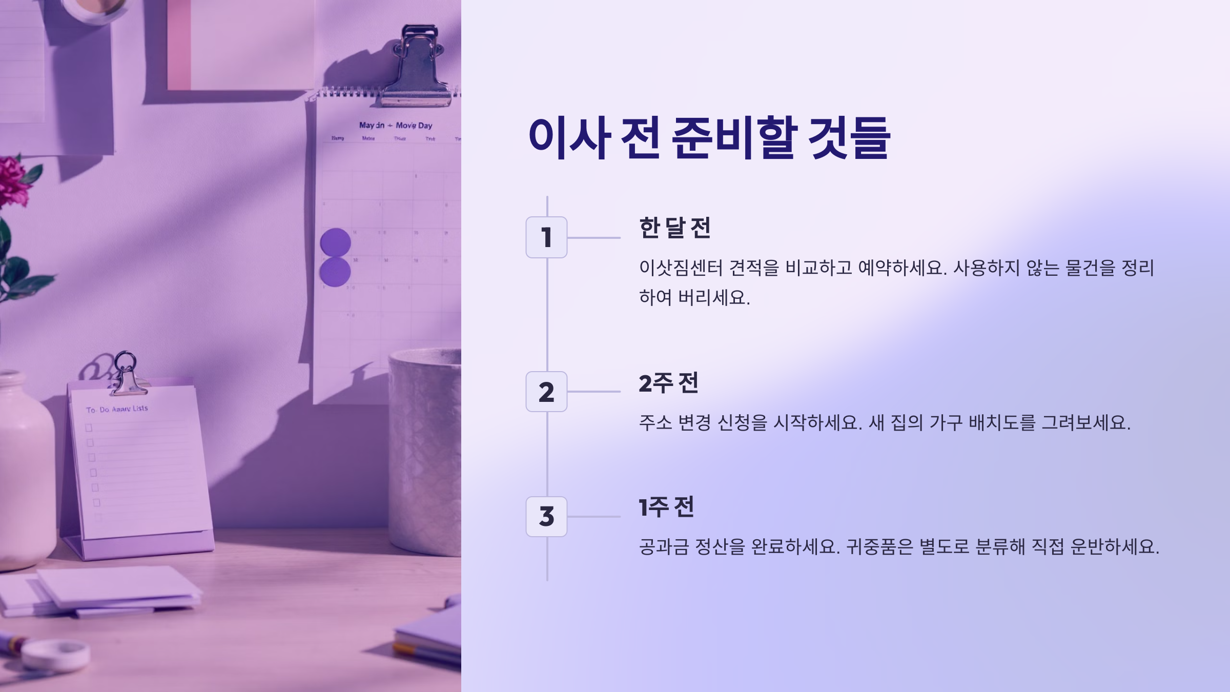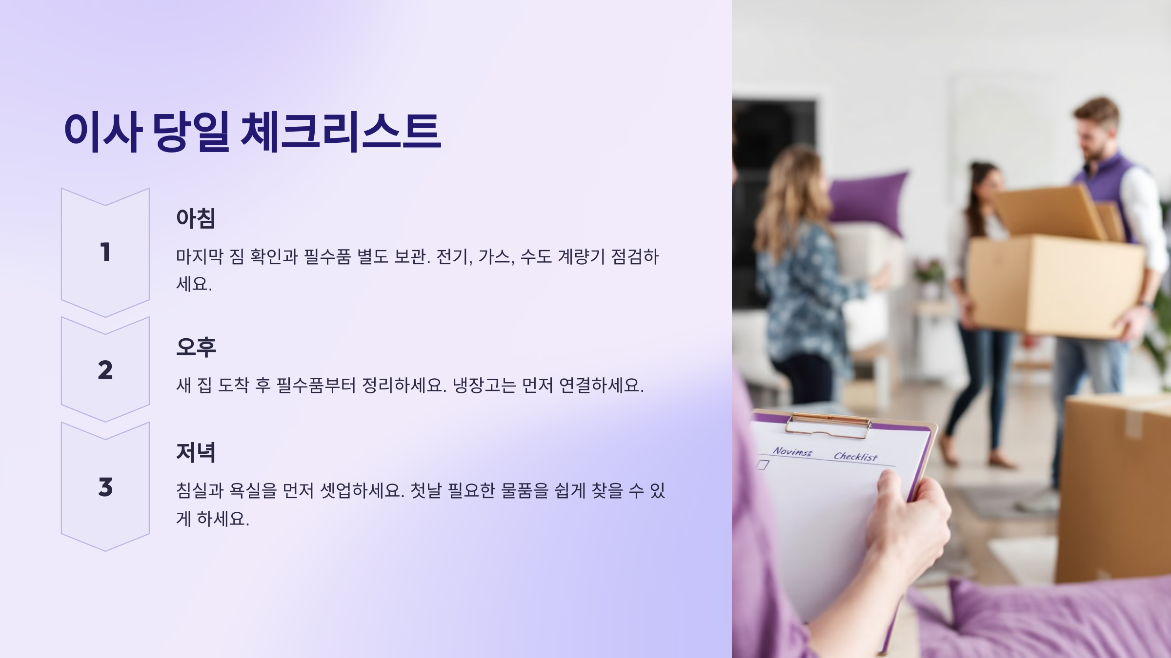 | 이사 날짜 결정 | 비수기 평일 오후 추천 | ✅ |