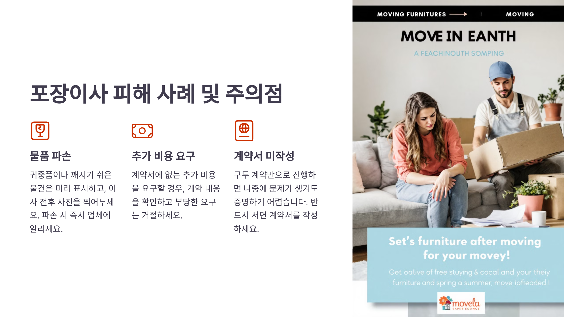 이제 포장이사 시 주의해야 할 점과 피해 사례에 대해 알아볼까요? 🚨