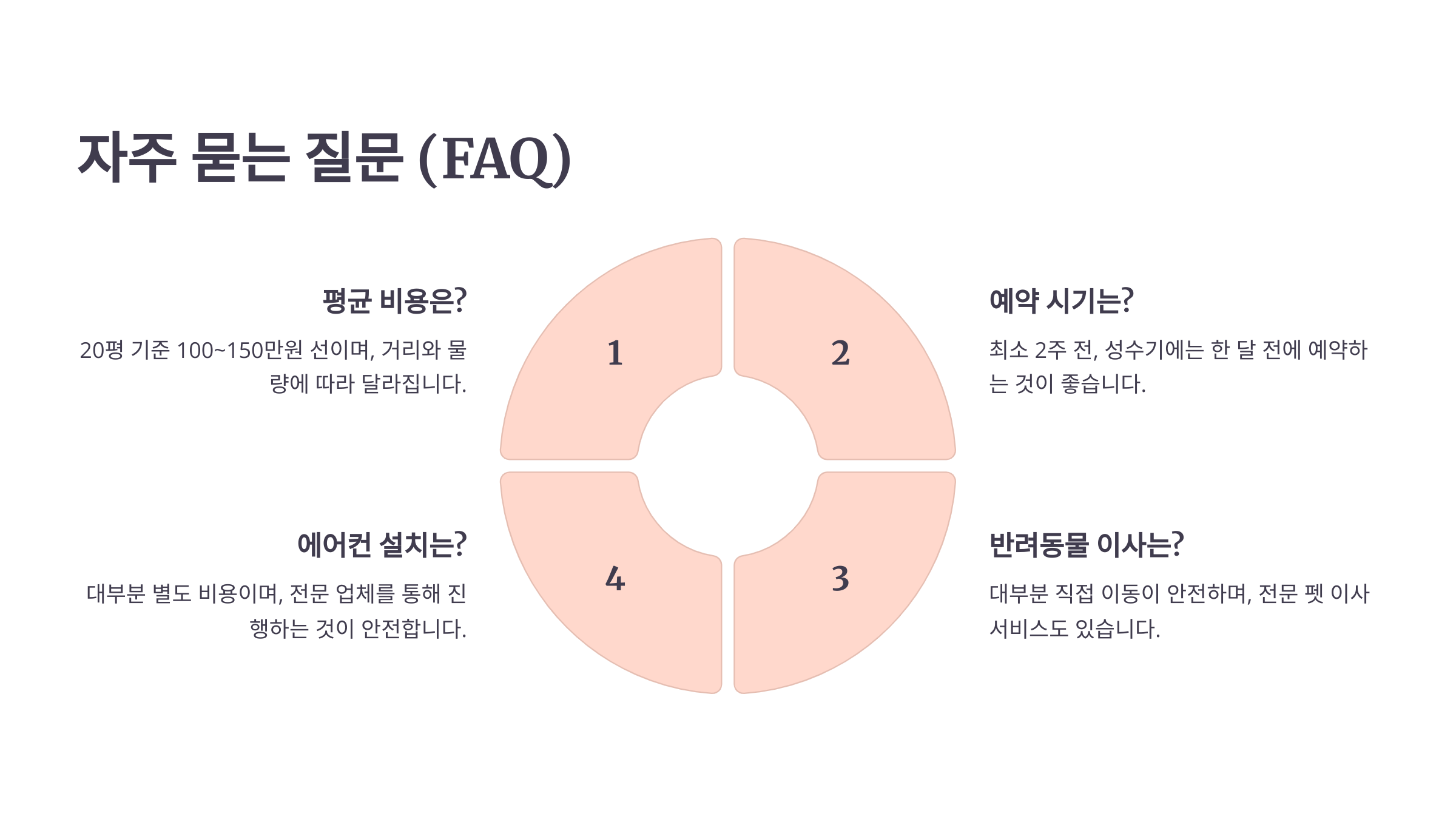 이제 포장이사에 대한 모든 정보를 알았어요! 마지막으로 자주 묻는 질문(FAQ)들을 정리해 볼게요. 😊