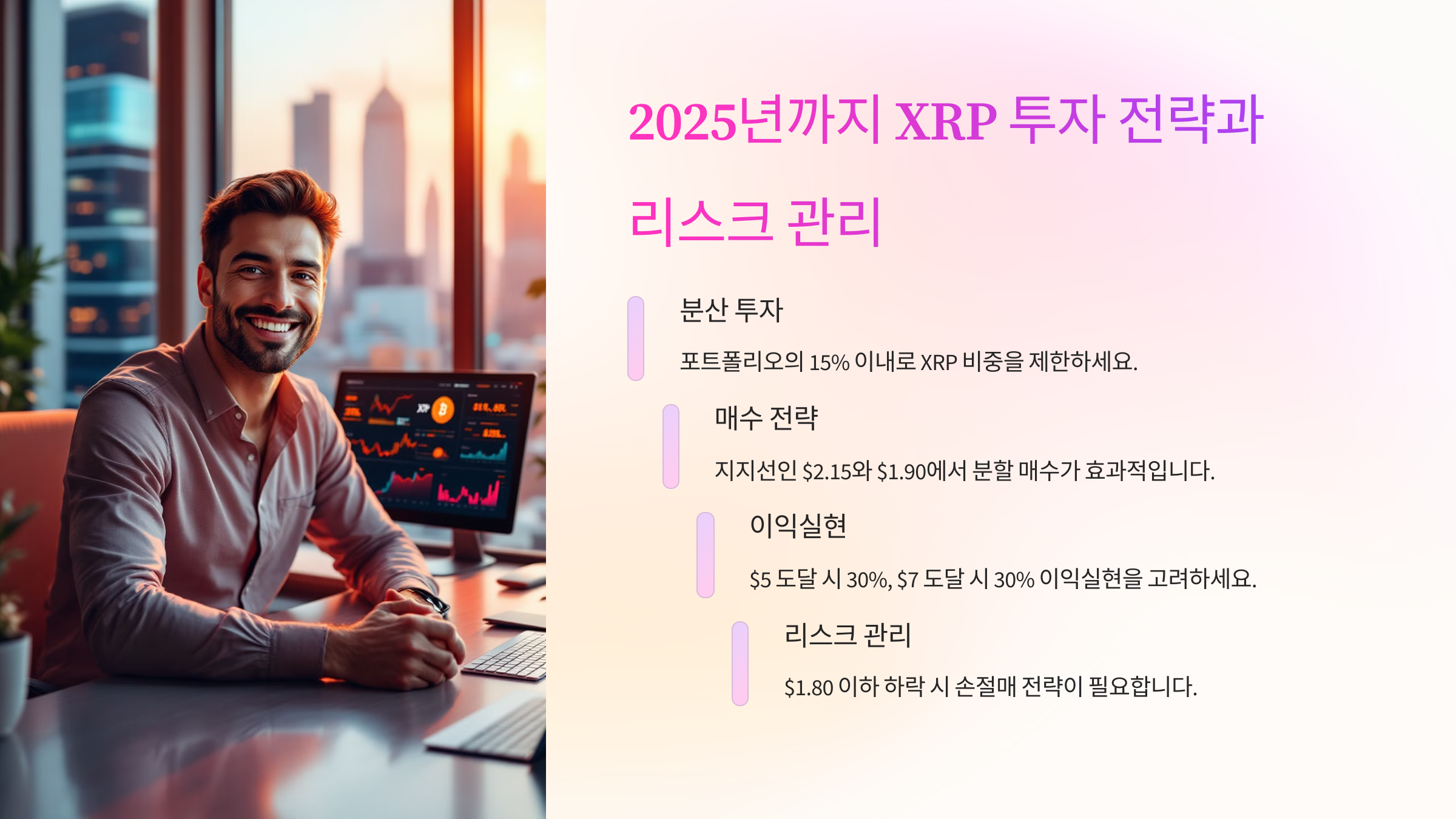 그렇다면, 2025년까지 XRP를 투자할 때 어떤 전략을 사용할 수 있을까요? 다음 섹션에서 XRP 투자 전략과 리스크 관리 방법을 살펴볼게요. 📈