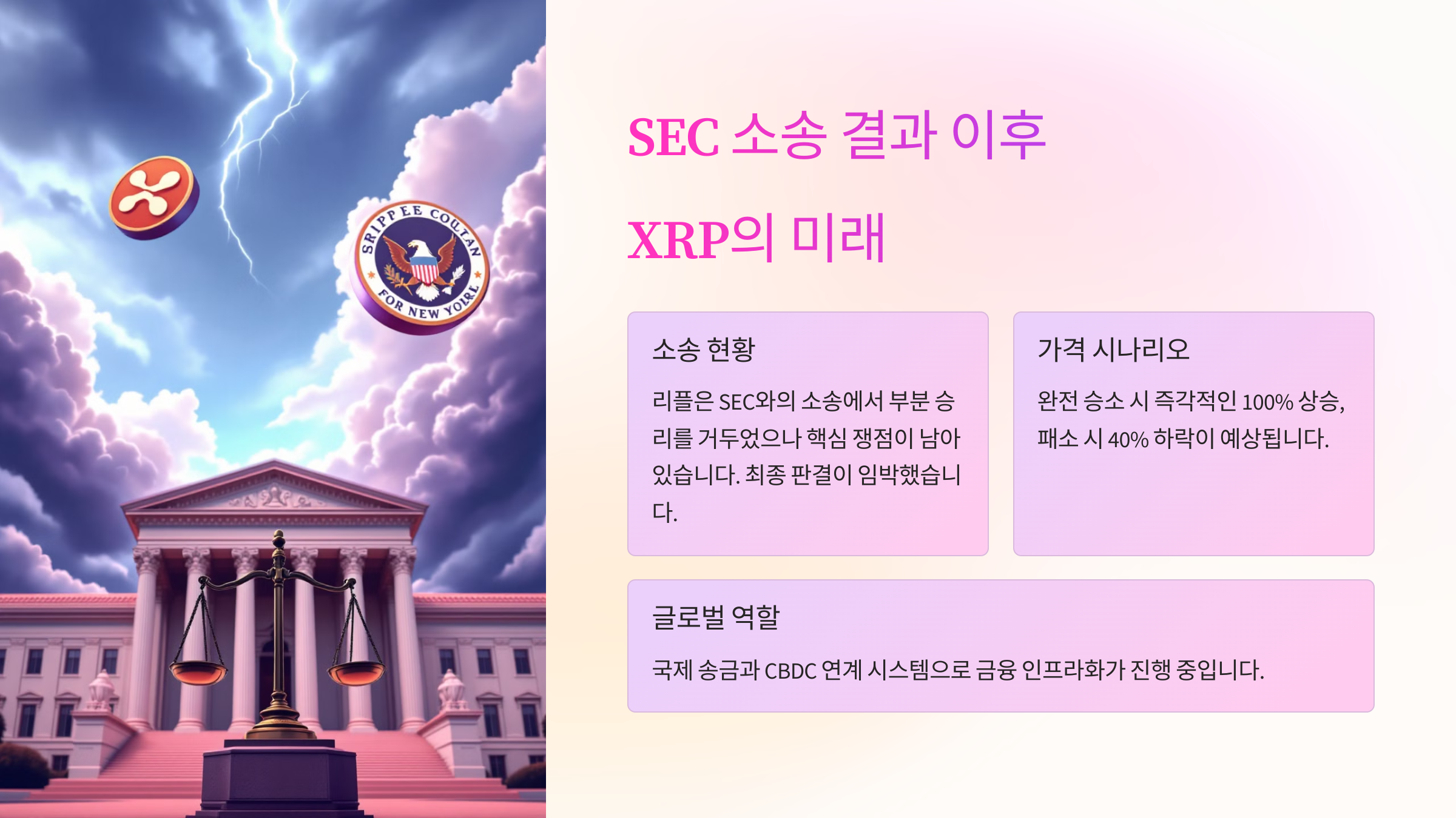 그렇다면 SEC 소송이 마무리된 후 XRP의 미래는 어떻게 될까요? 다음 섹션에서 자세히 분석해볼게요. ⚖️
