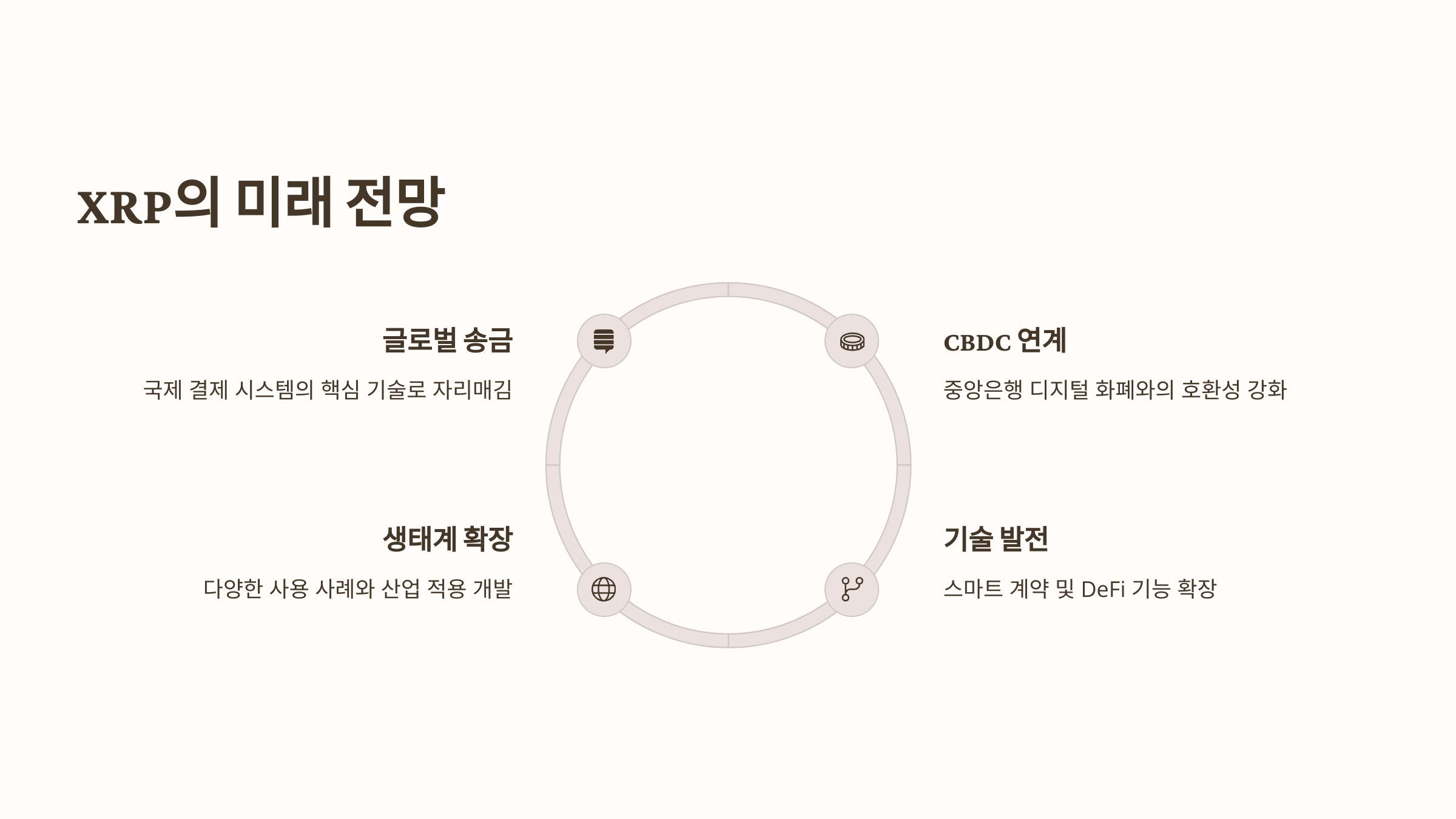 - CBDC(중앙은행 디지털 화폐)와 협업: 일부 국가에서는 XRP의 블록체인 기술을 활용해 중앙은행 디지털 화폐(CBDC)를 개발하려는 움직임을 보이고 있어요.