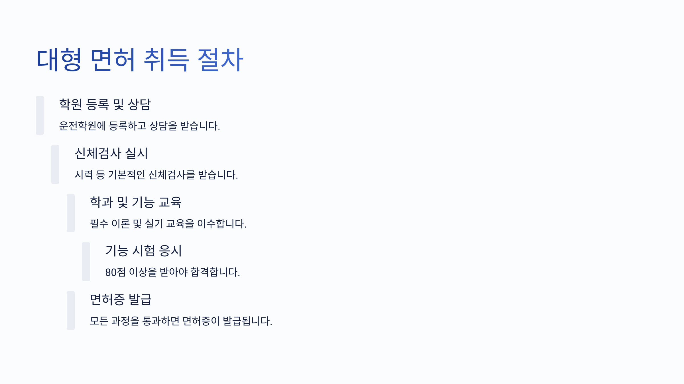 👉 다음 섹션에서는 대형 면허 취득 절차를 알아볼게요!