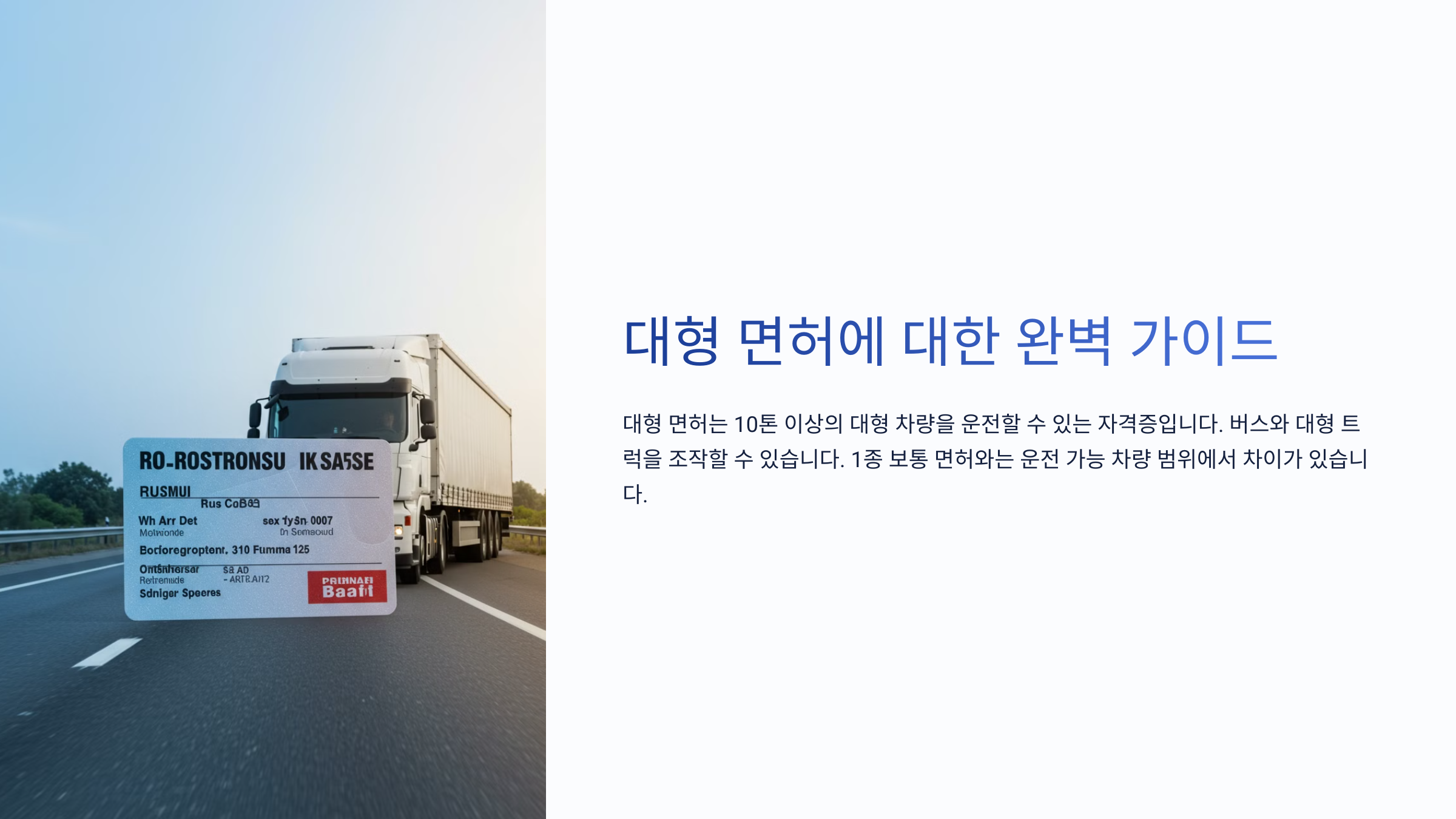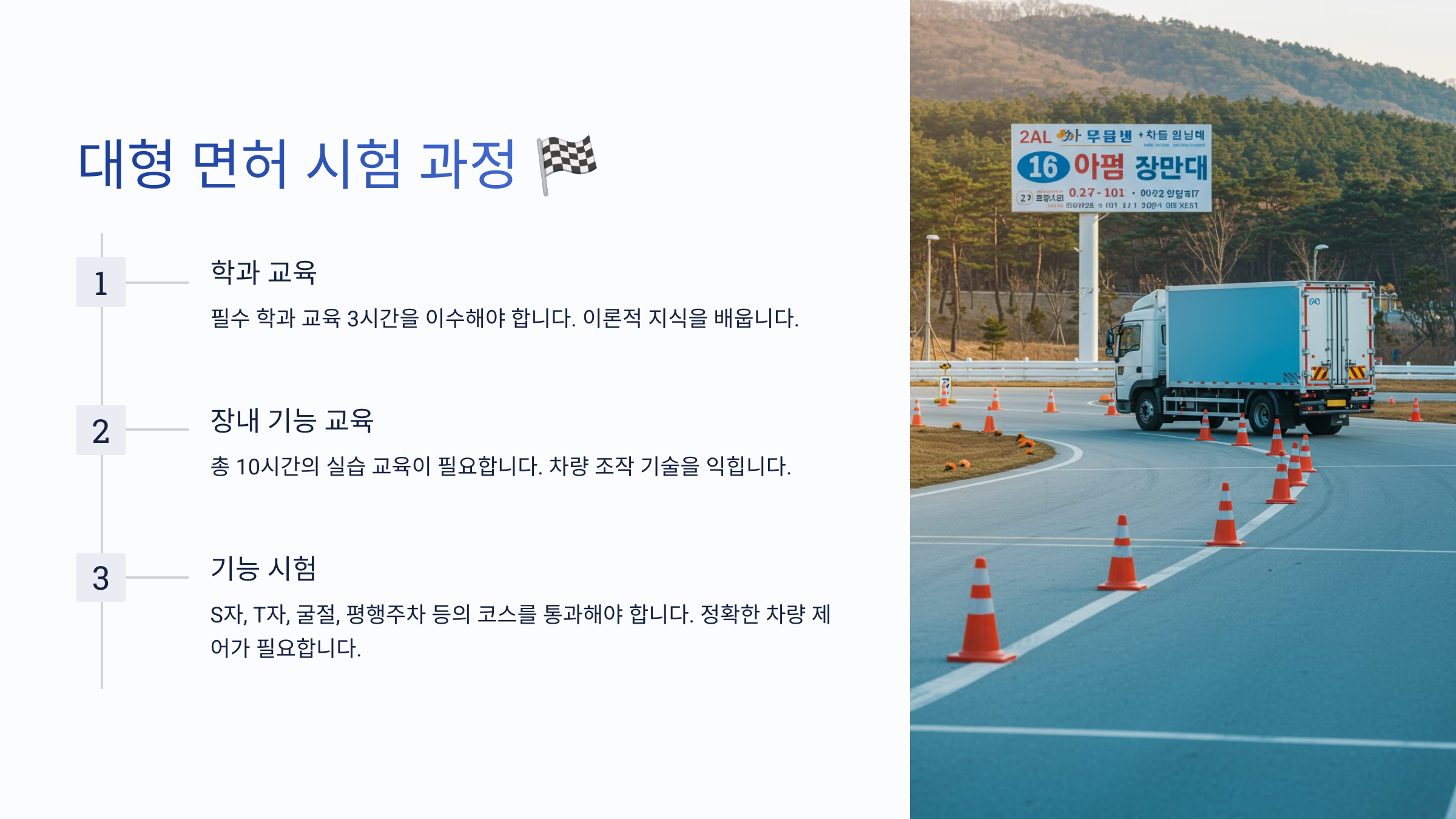 태그: 대형면허, 대형면허시험, 버스면허, 트럭운전, 화물차운전, 운전면허취득, 도로주행, 운전직취업, 특수면허, 면허시험장