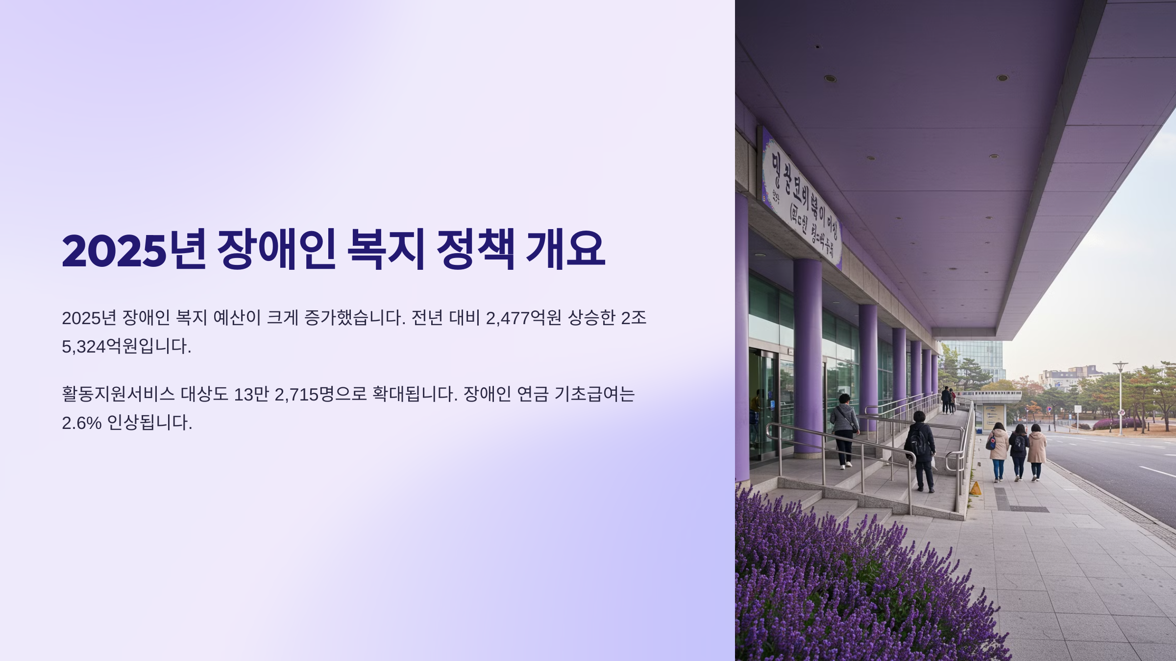 장애인을 위한 복지 정책은 매년 개선되고 있어요. 2025년에는 이동 편의성과 생활 안정성을 높이기 위한 다양한 지원이 추가될 예정이에요.