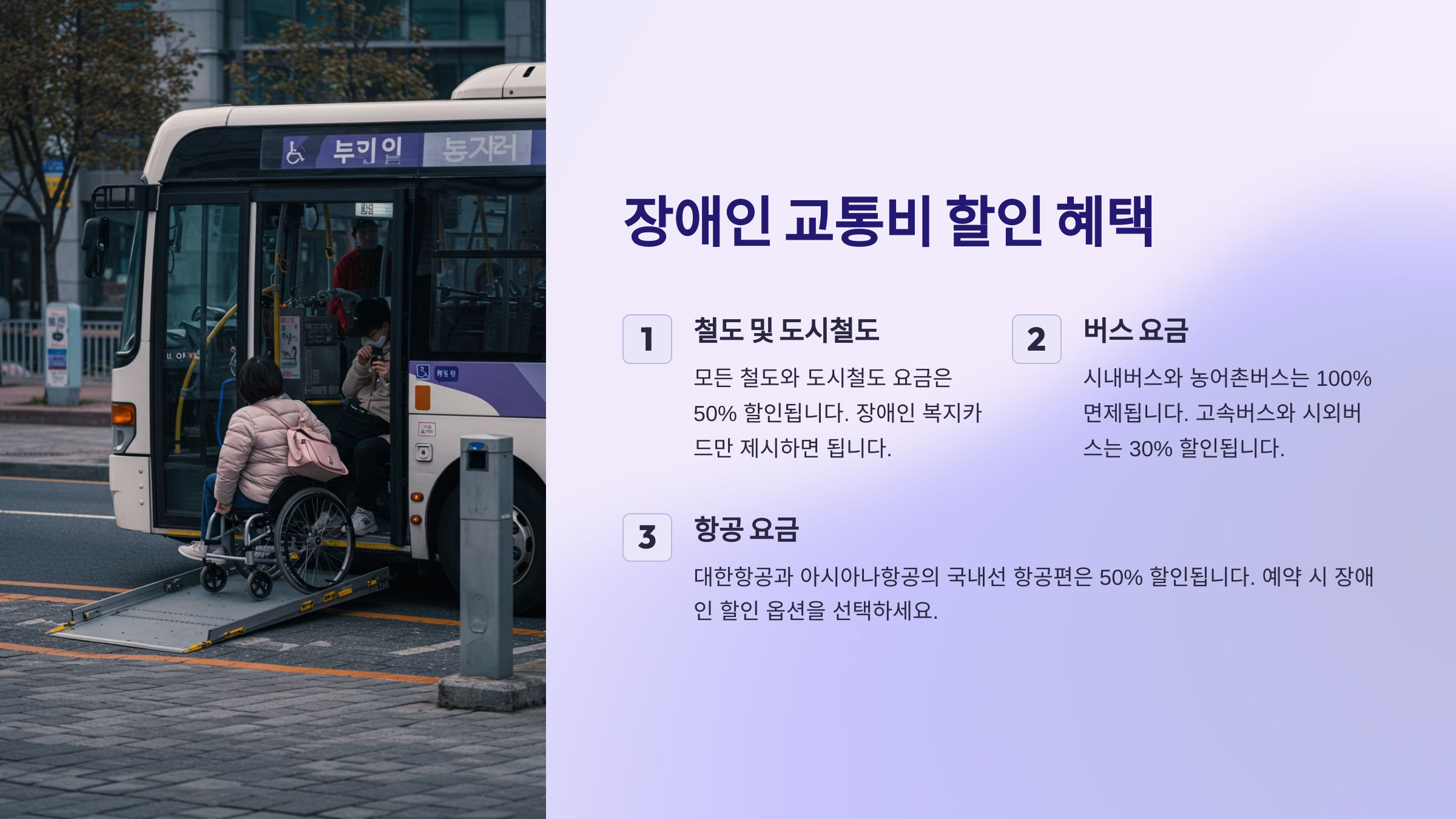 장애인은 대중교통 이용 시 할인 혜택을 받을 수 있어요. 2025년부터는 할인 대상이 확대되고, 교통 이용이 더욱 편리해질 예정이에요.