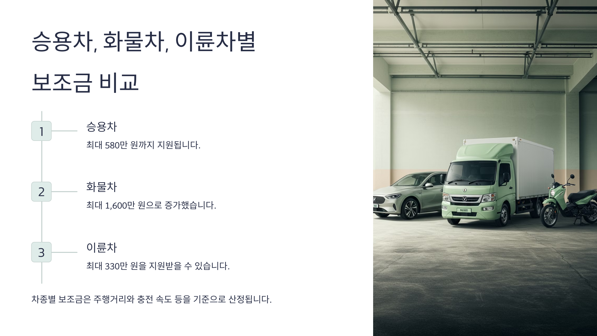 📢 다음 섹션에서는 승용차, 화물차, 이륜차별 보조금 비교를 자세히 알아볼게요! 🚛🏍️