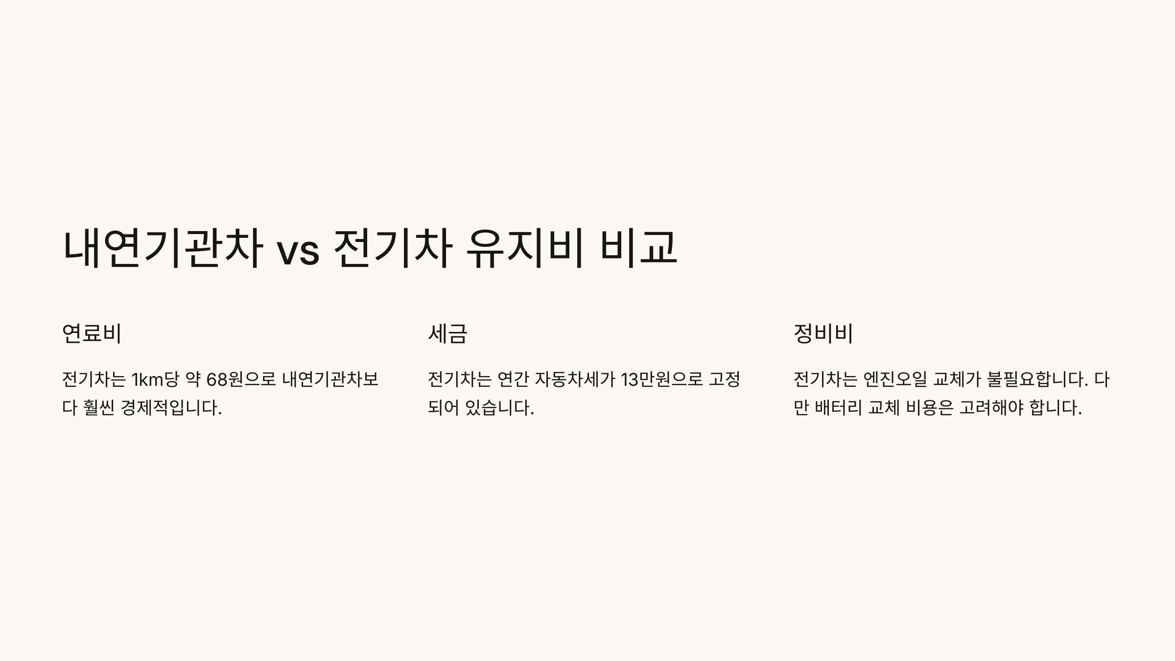 📌 다음 섹션에서는 "내연기관차 vs 전기차 유지비 비교"를 해볼게요! 🚙💰