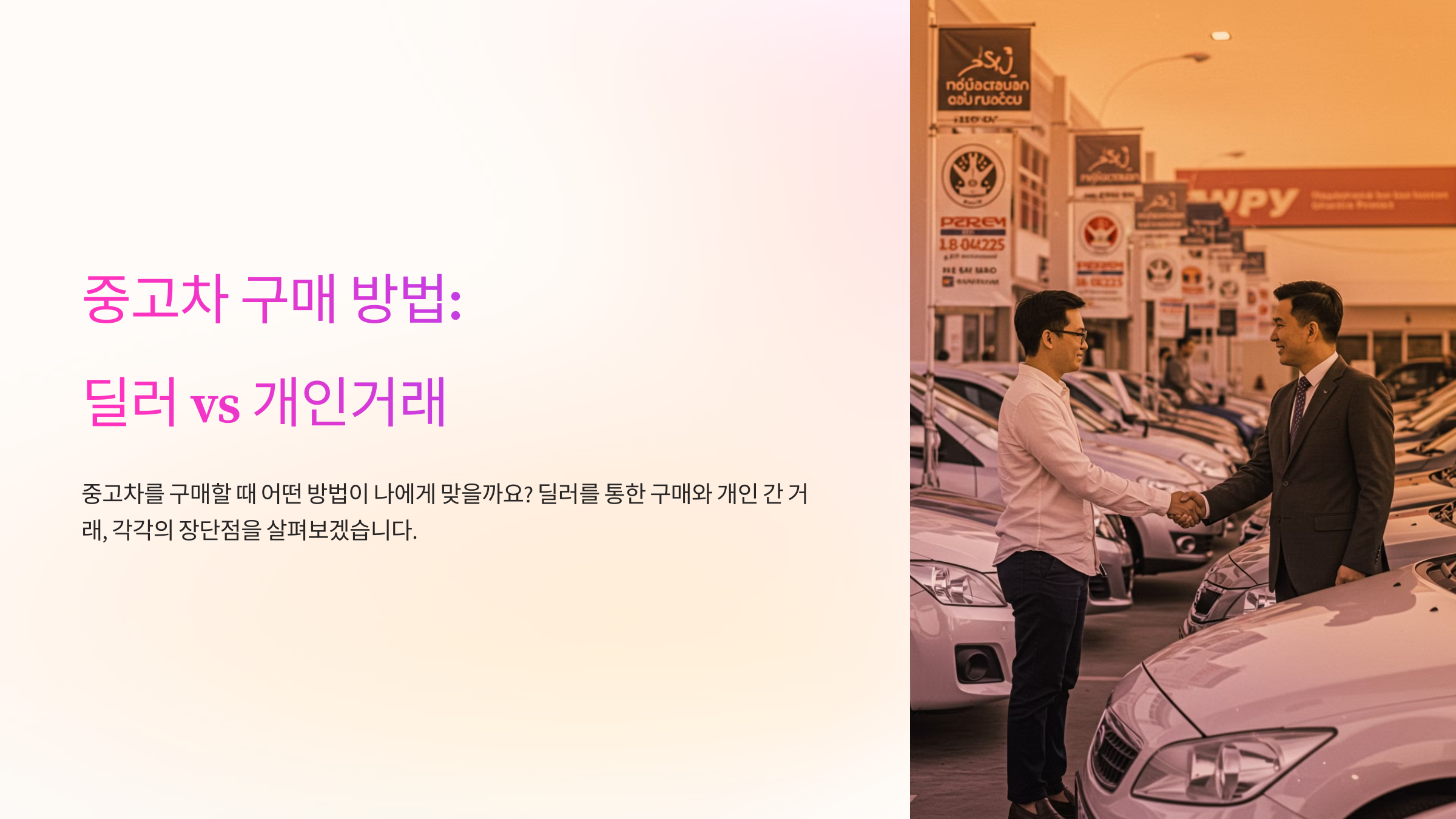 🚗 딜러를 통한 구매 vs 개인거래, 어떤 방법이 더 좋은 선택일까요? 두 가지 방식의 장단점을 한눈에 비교할 수 있도록 정리했어요! 📊