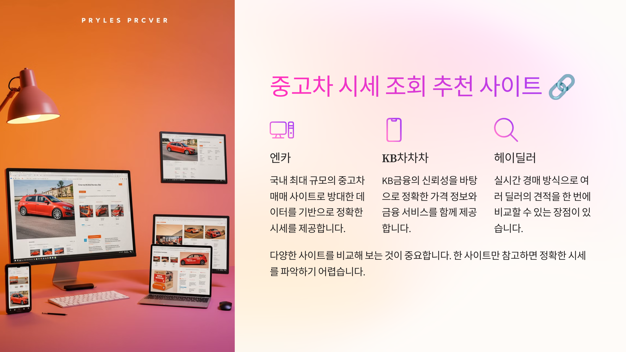 이제 정확한 중고차 시세 조회 방법과 신뢰할 수 있는 사이트를 소개할게요! 🔗