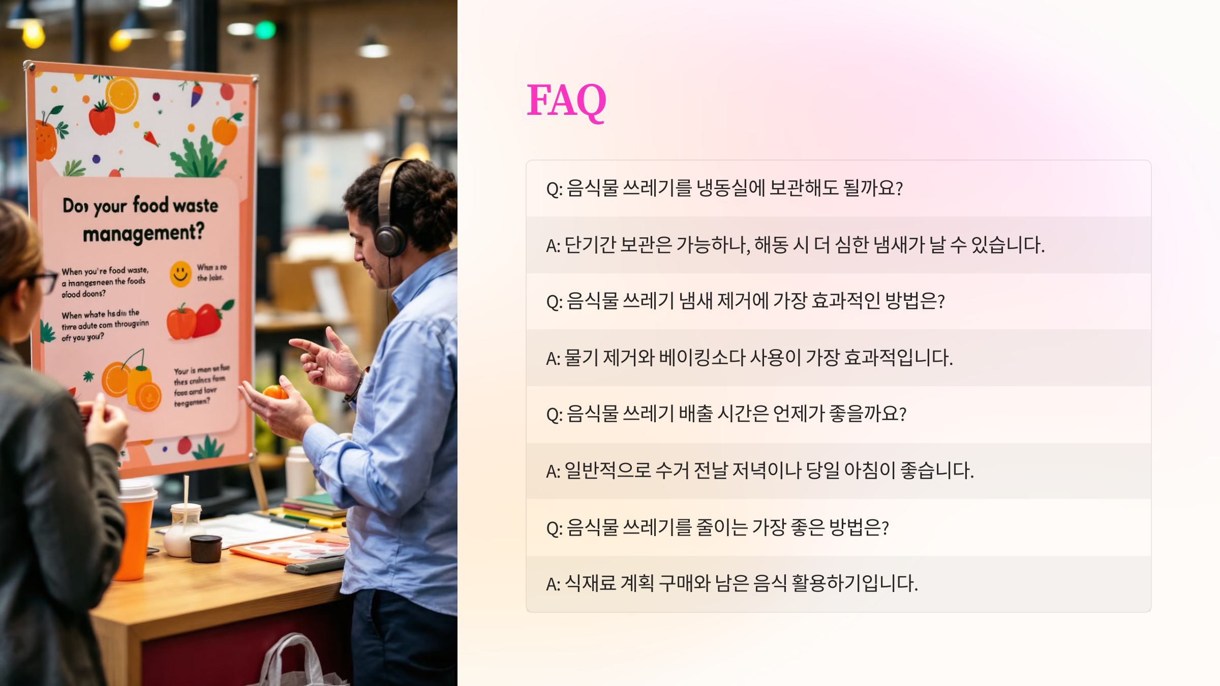 이제, 많은 분들이 궁금해하는 음식물 쓰레기 관리 관련 FAQ를 확인해볼까요? ❓