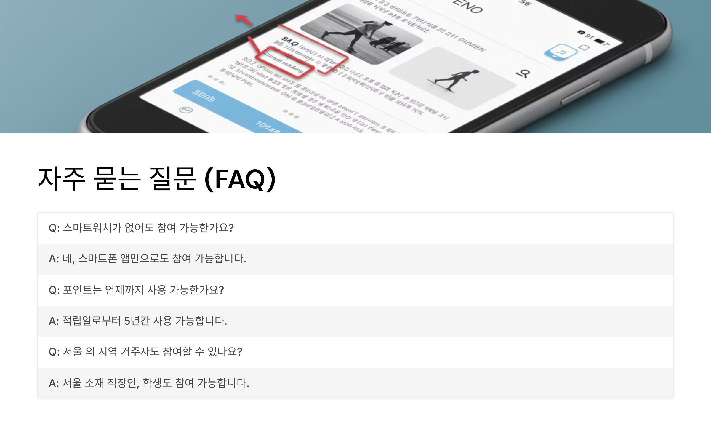 A1. 네! 서울시에 거주하는 시민이라면 누구나 참여할 수 있어요. 단, 스마트워치 연동이 필요하기 때문에 기기를 보유하고 있어야 해요. 📲