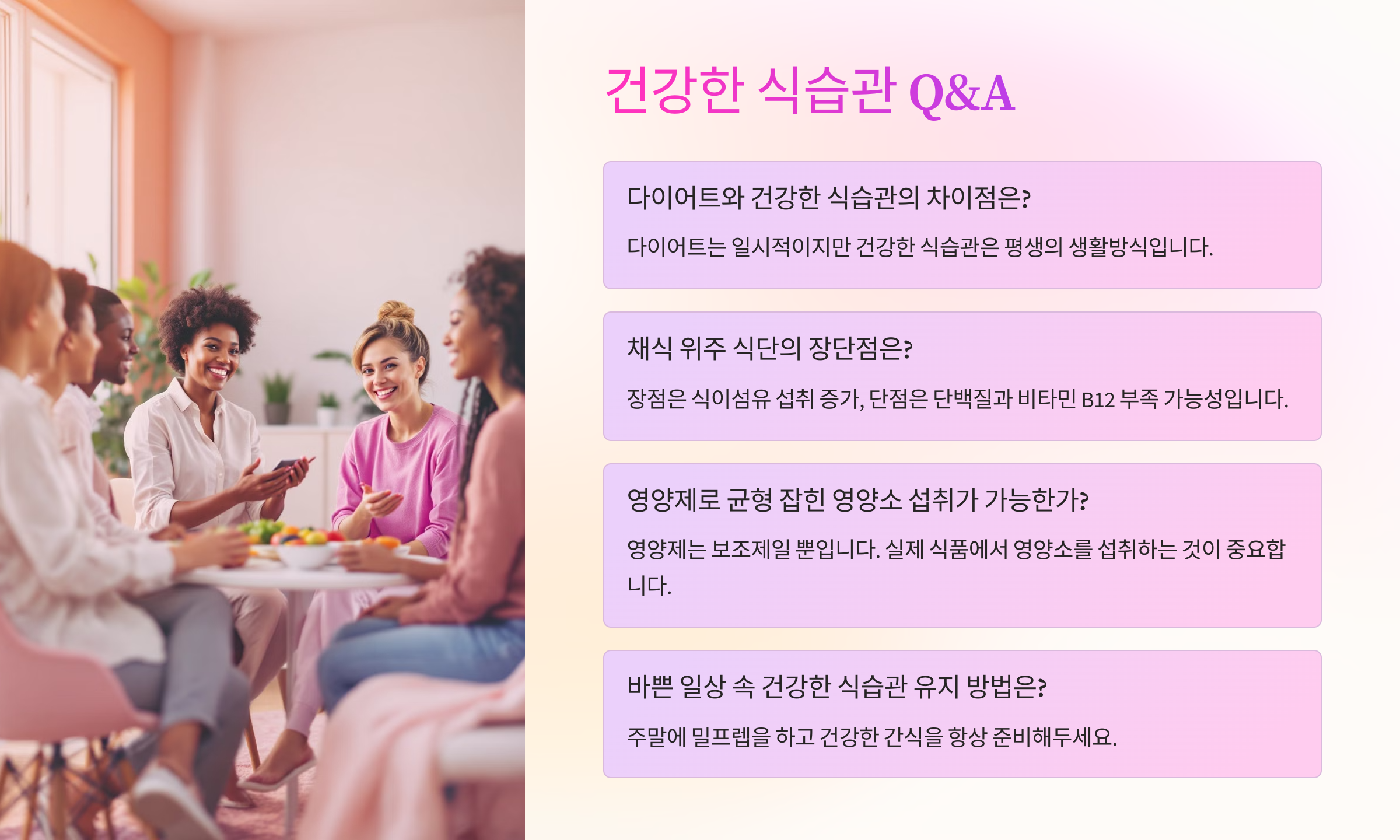 조금씩 실천하다 보면 건강한 식습관이 몸에 자연스럽게 배게 될 거예요! 💚