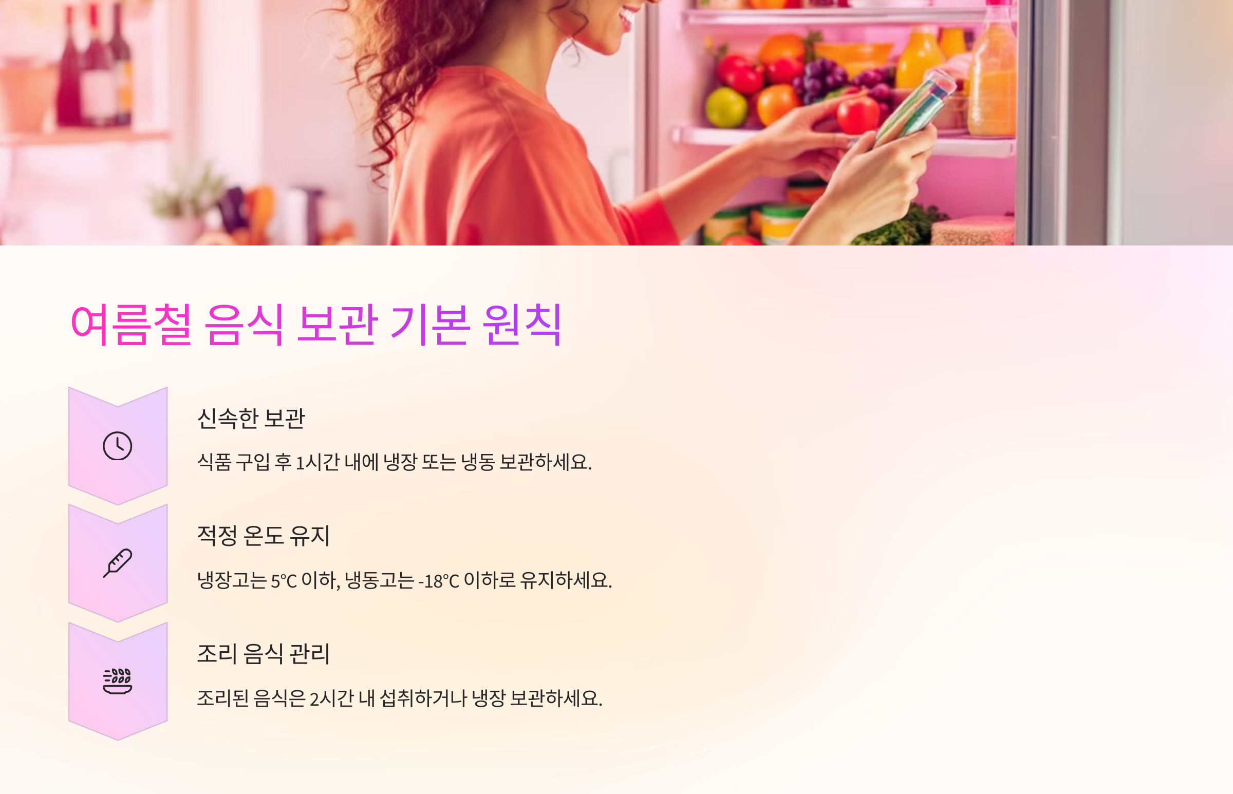 여름에는 음식이 빠르게 상하기 때문에 보관 방법을 제대로 지키는 것이 중요해요. 특히 온도와 습도를 관리하는 것이 핵심이에요! ❄️