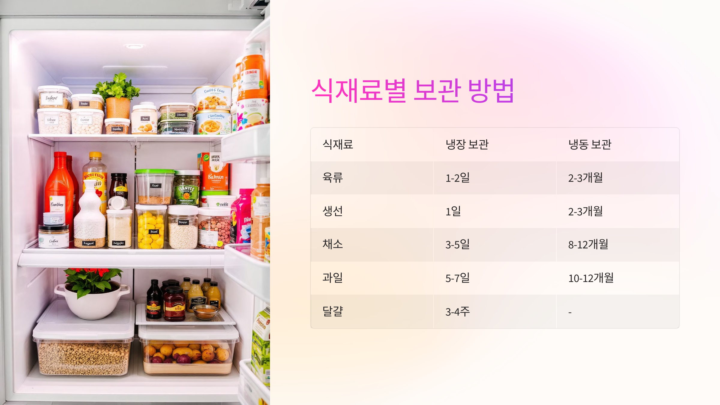 음식을 신선하게 보관하려면 냉장고와 냉동고를 효율적으로 사용하는 것이 중요해요! 아래 꿀팁을 참고하세요. 🏡