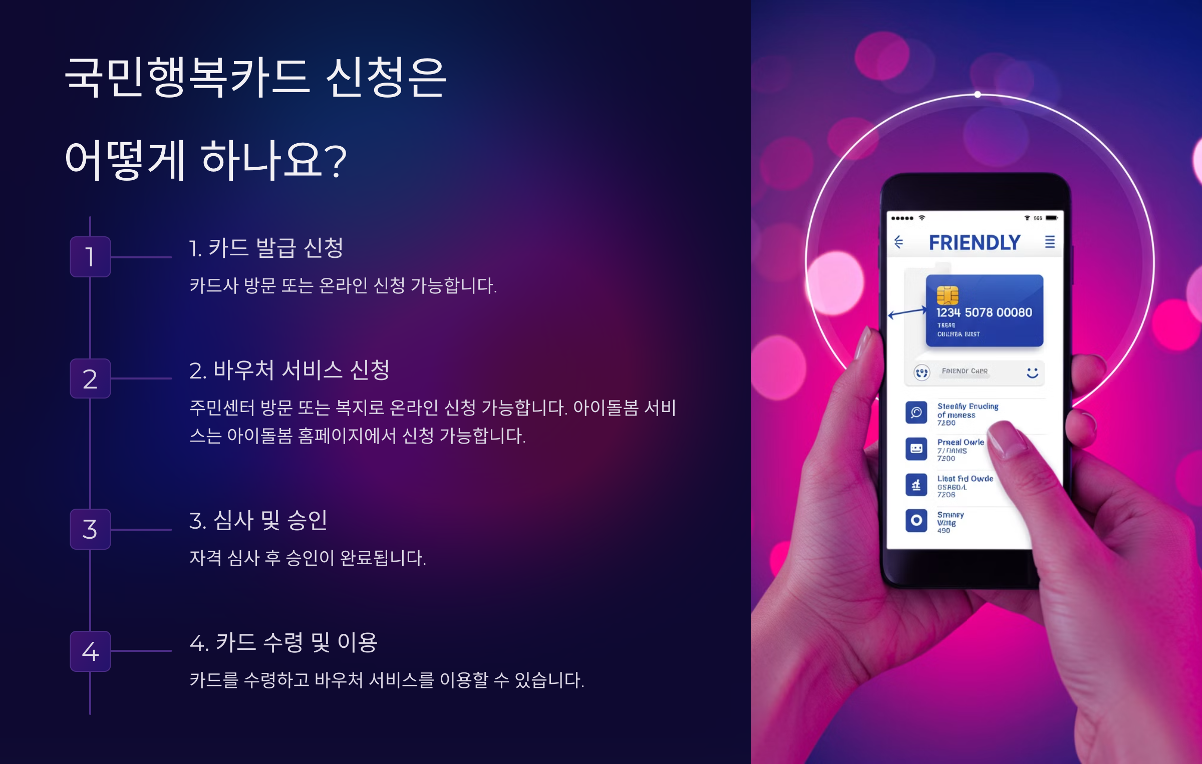 또한, 카드 발급사가 확대될 예정이에요. 기존에는 KB국민카드, 신한카드, 롯데카드에서만 발급 가능했지만, 2025년부터는 삼성카드에서도 국민행복카드를 신청할 수 있을 가능성이 커요.