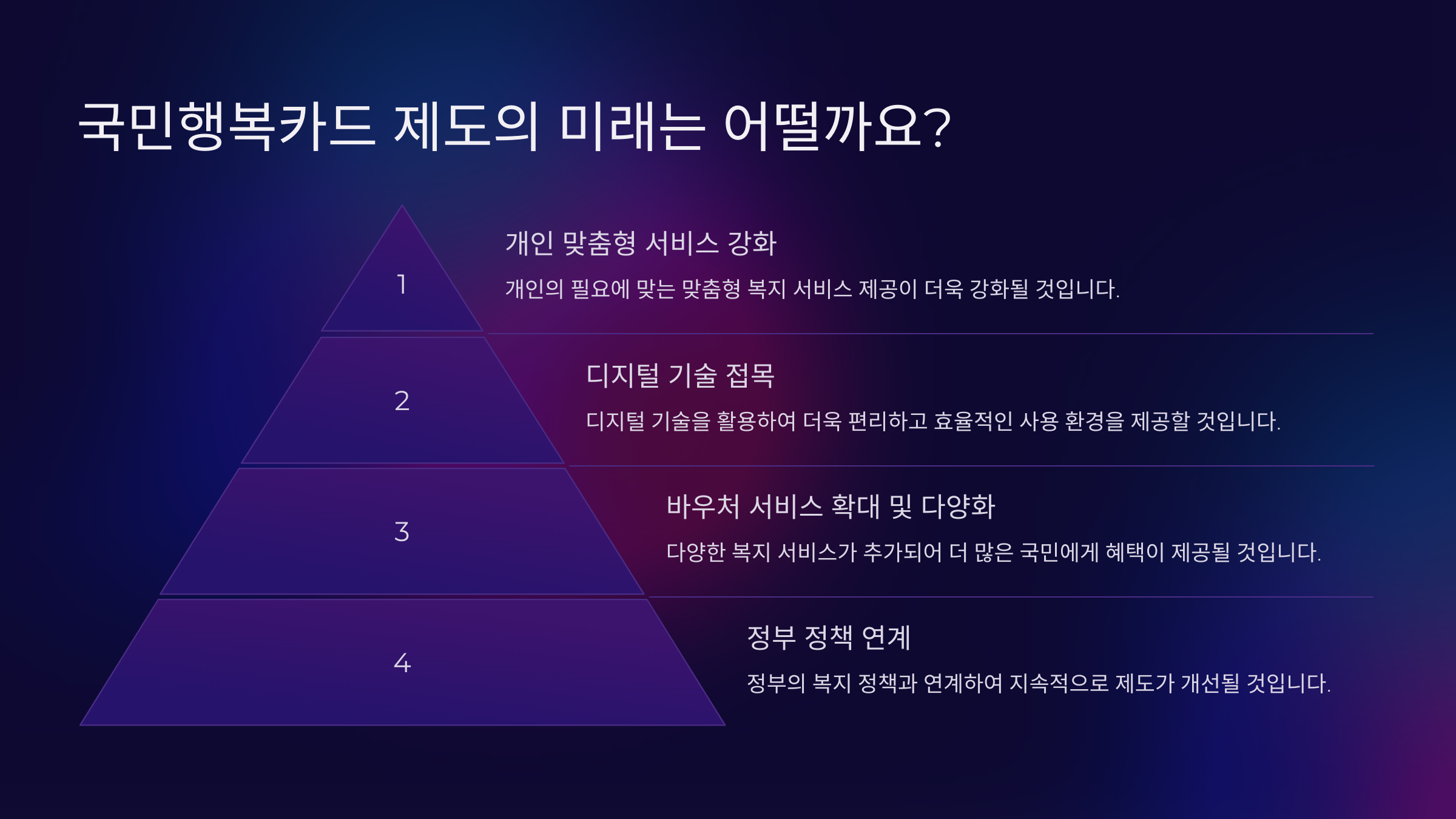 이처럼 2025년 이후 국민행복카드는 점진적으로 확대되고 개선될 가능성이 높아요. 향후 변화하는 정책을 지속적으로 확인하는 것이 중요해요.