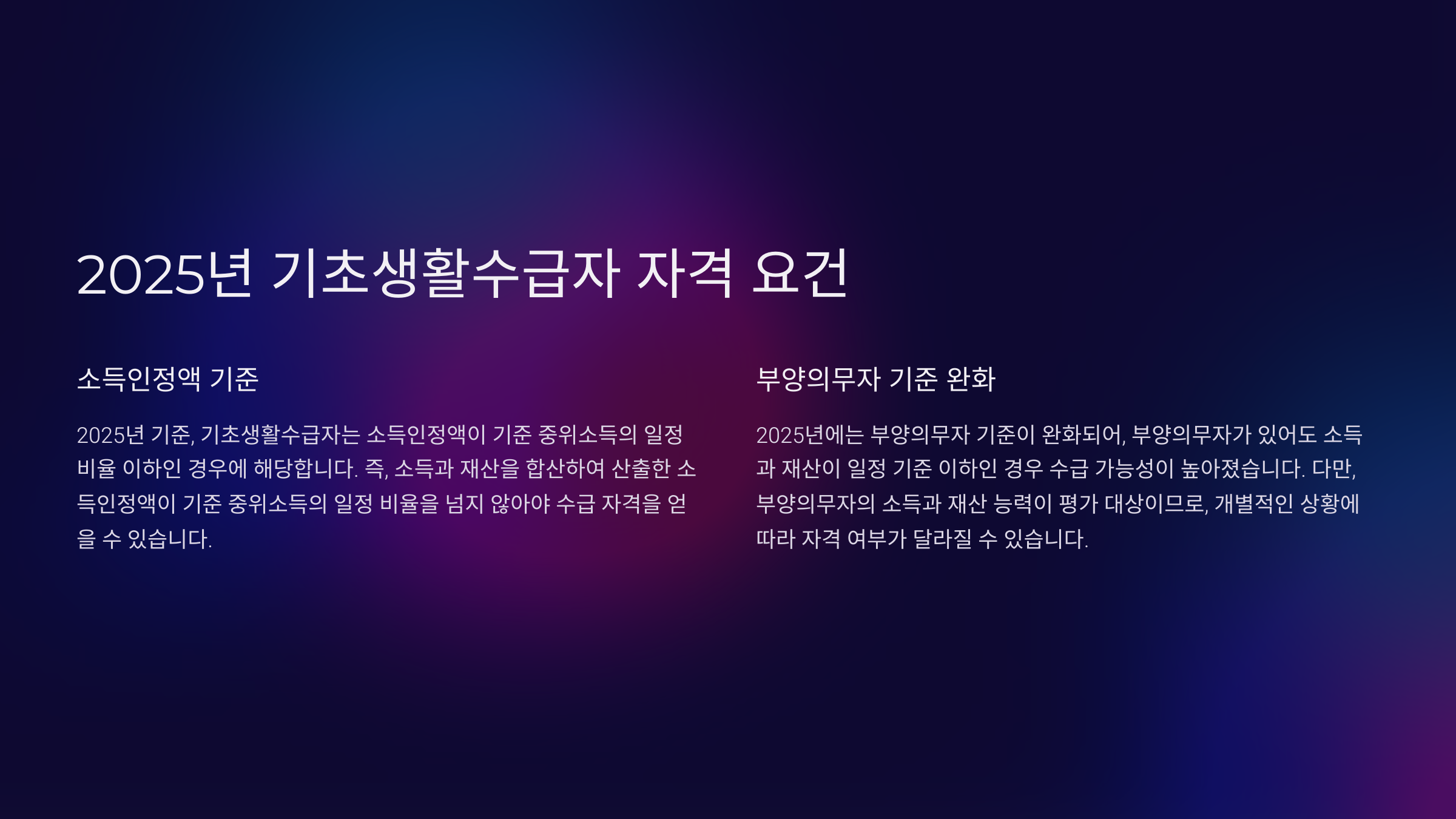 2025년 기초생활수급자 자격 요건