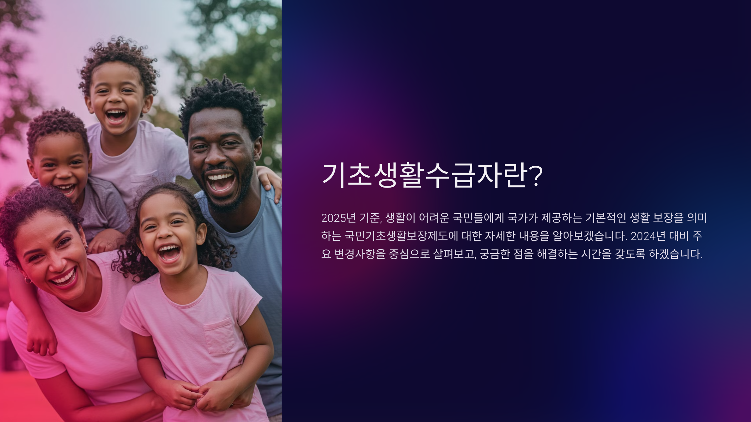 2025년 기초생활수급자, 기초생활수급자 자격, 기초생활수급자 신청, 기초생활수급자 소득 기준, 생계급여, 의료급여, 주거급여, 교육급여, 정부 복지 지원, 저소득층 지원