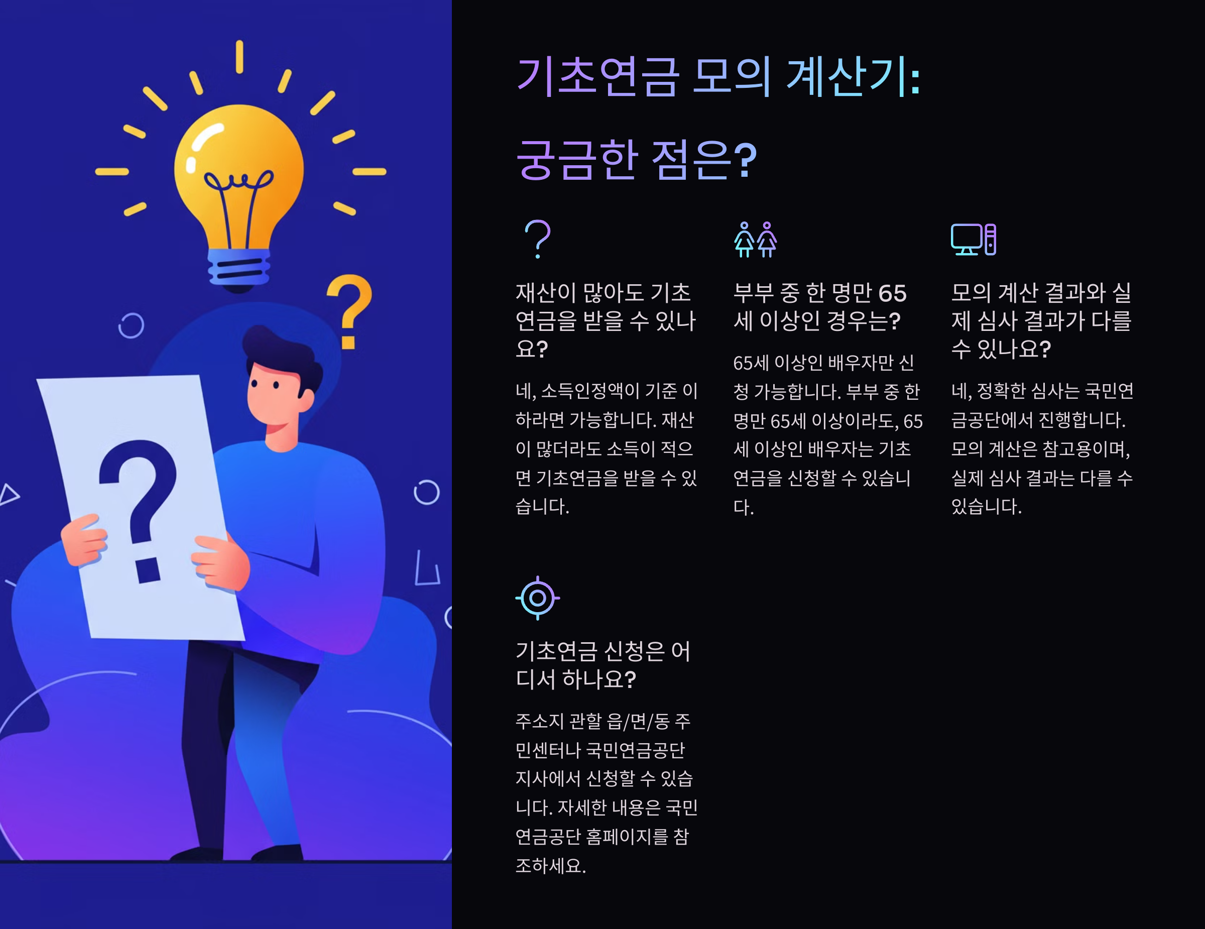 - 결과 확인: 기초연금 수급 가능 여부 및 예상 지급액 표시