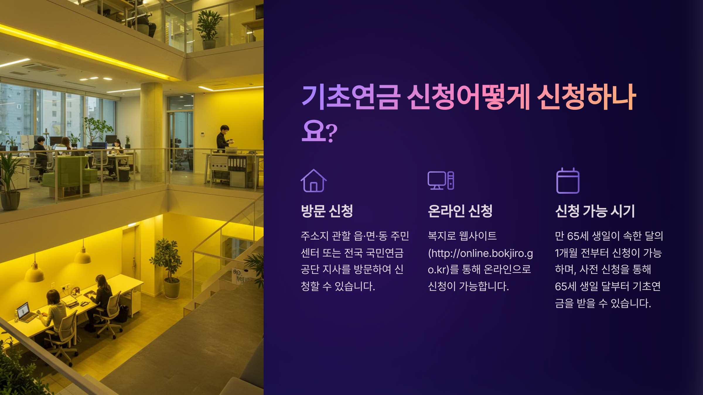 이제 기초연금 신청 방법을 알아볼까요? 😊