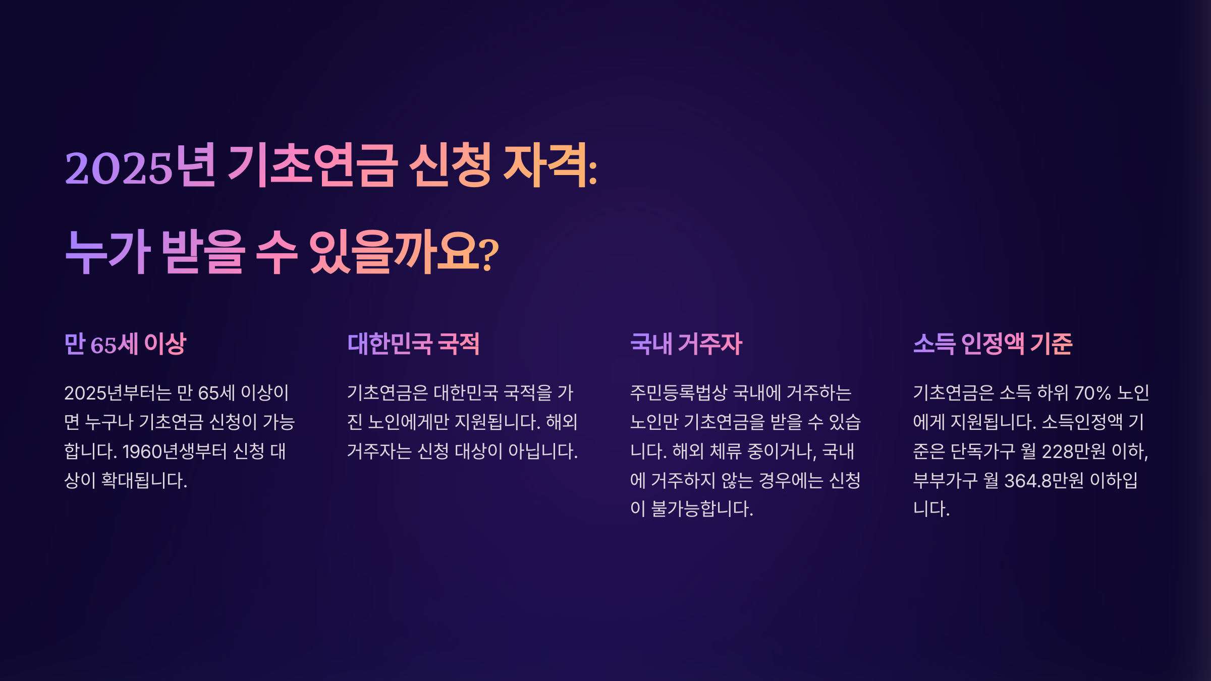 이제 2025년 기초연금 신청 자격을 자세히 알아볼까요? 😊