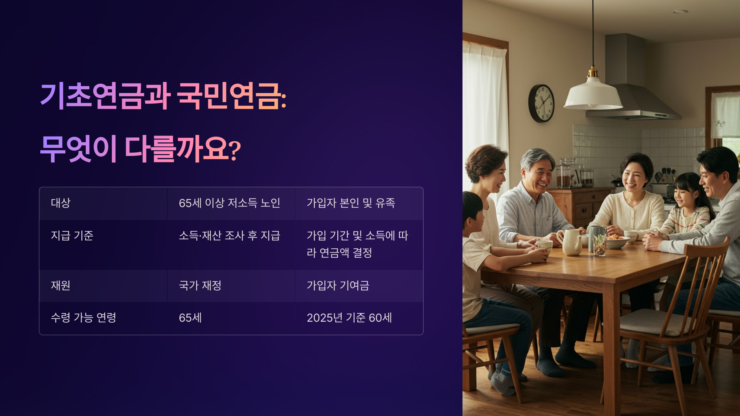 아래 표를 통해 기초연금과 국민연금의 차이를 한눈에 확인해 보세요.