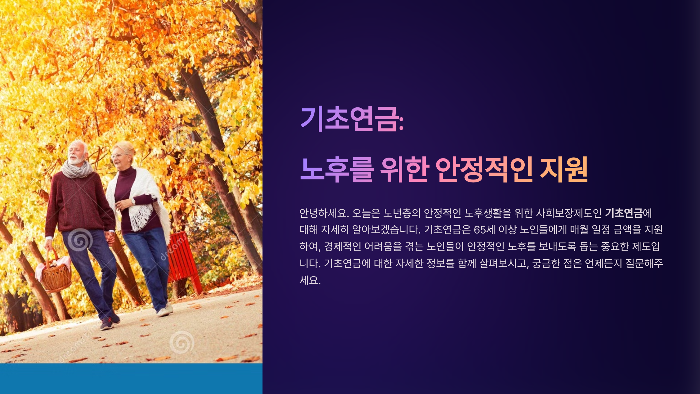 기초연금은 우리나라 만 65세 이상 어르신들에게 안정적인 소득을 지원하기 위해 지급되는 국가 연금 제도예요. 기본적으로 일정 소득 이하의 노인들에게 매월 일정 금액을 지급하여 생활 안정에 도움을 주는 제도죠.