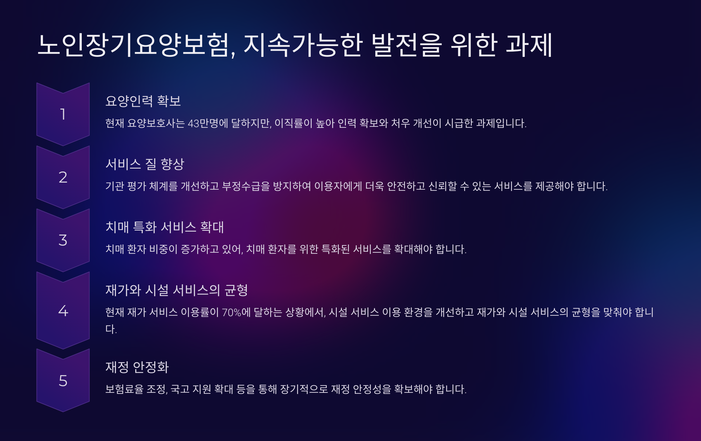 노인장기요양보험은 초고령 사회로 진입하는 대한민국에서 필수적인 복지 제도로 자리 잡았어요. 하지만, 2025년 이후에는 보험 재정 문제, 요양서비스 질 개선, 요양보호사 처우 등 해결해야 할 과제가 많아요.