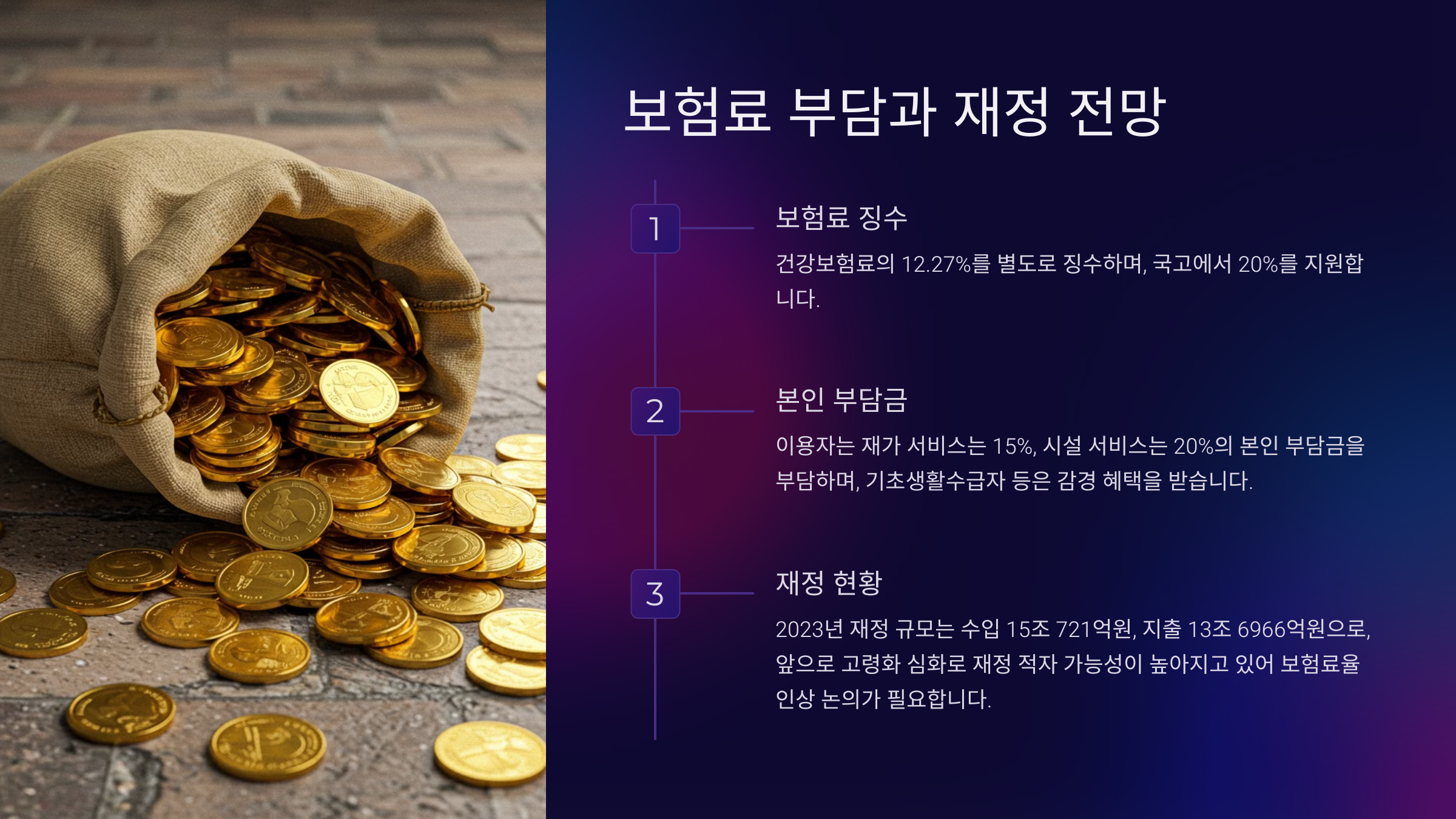 노인장기요양보험은 국민이 납부하는 건강보험료의 일정 비율로 운영돼요. 하지만, 고령 인구 증가와 요양서비스 확대로 인해 2025년 이후에는 재정 부담이 더 커질 것으로 예상돼요.
