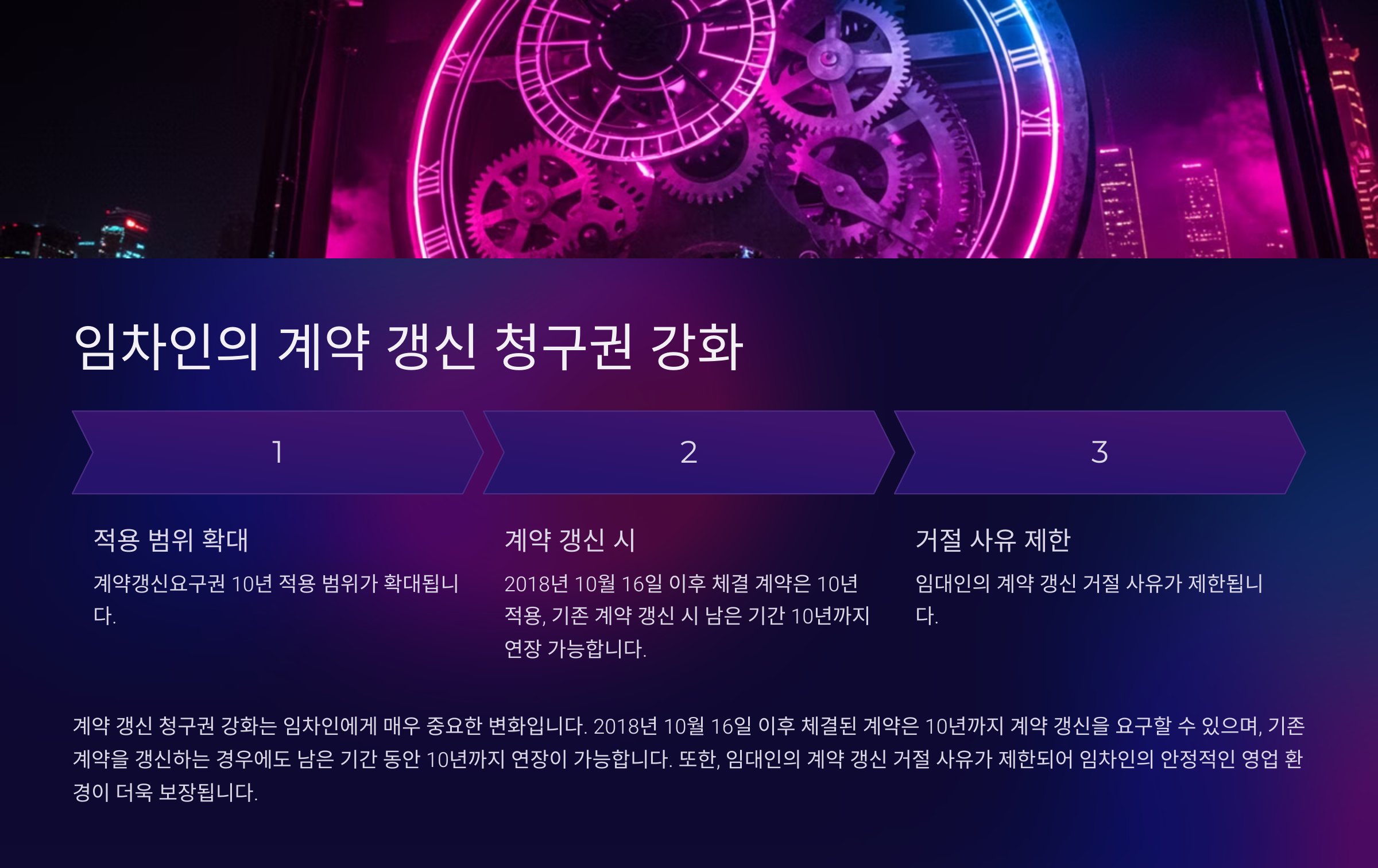 - 임차인이 장기적으로 안정적인 영업을 할 수 있도록 보호해요.