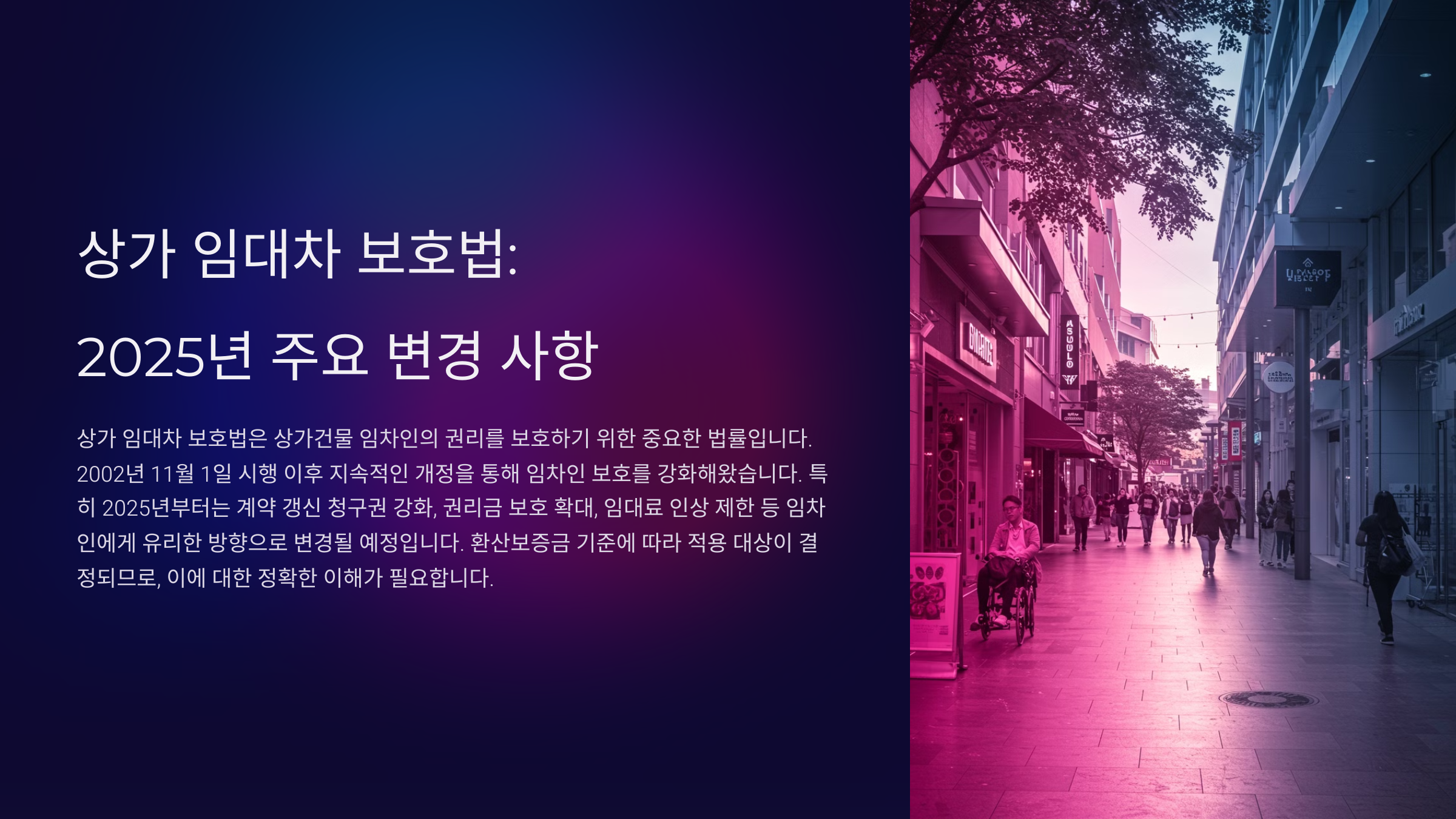 그렇다면 2025년부터 변경되는 상가 임대차 보호법의 주요 내용은 무엇인지 살펴볼까요? 다음 섹션에서 자세히 알아볼게요!