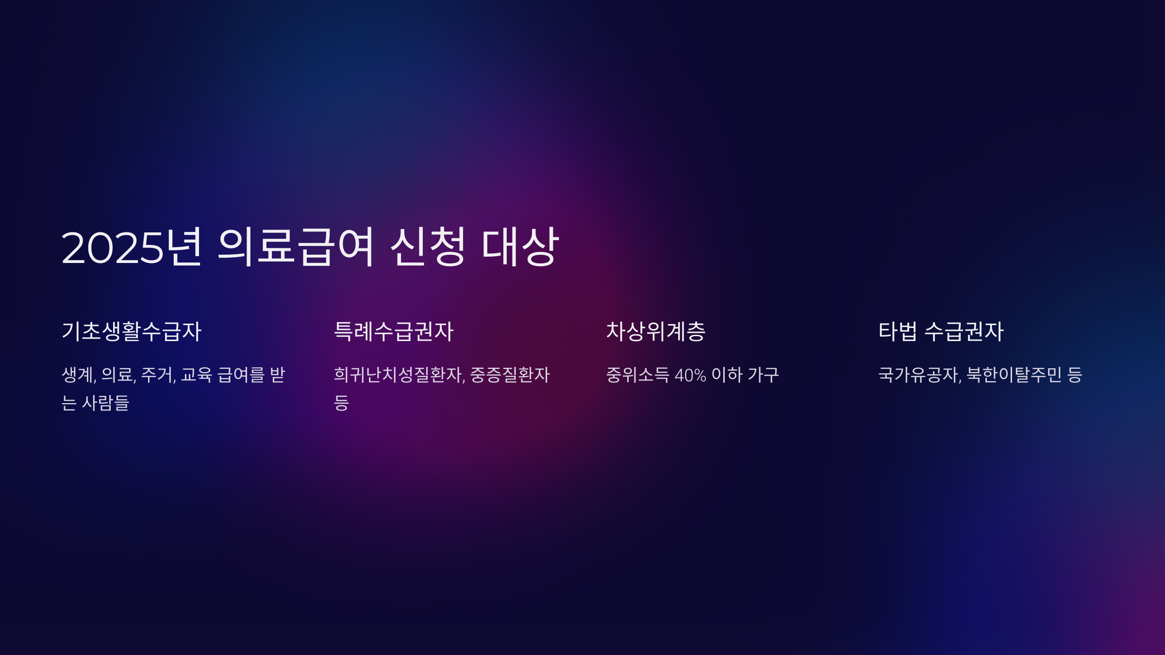 의료급여 대상 여부는 소득과 재산 수준을 기준으로 결정돼요. 2025년부터는 차상위계층에 대한 지원이 확대될 가능성이 있기 때문에, 해당되는지 미리 확인해 보는 것이 중요해요.