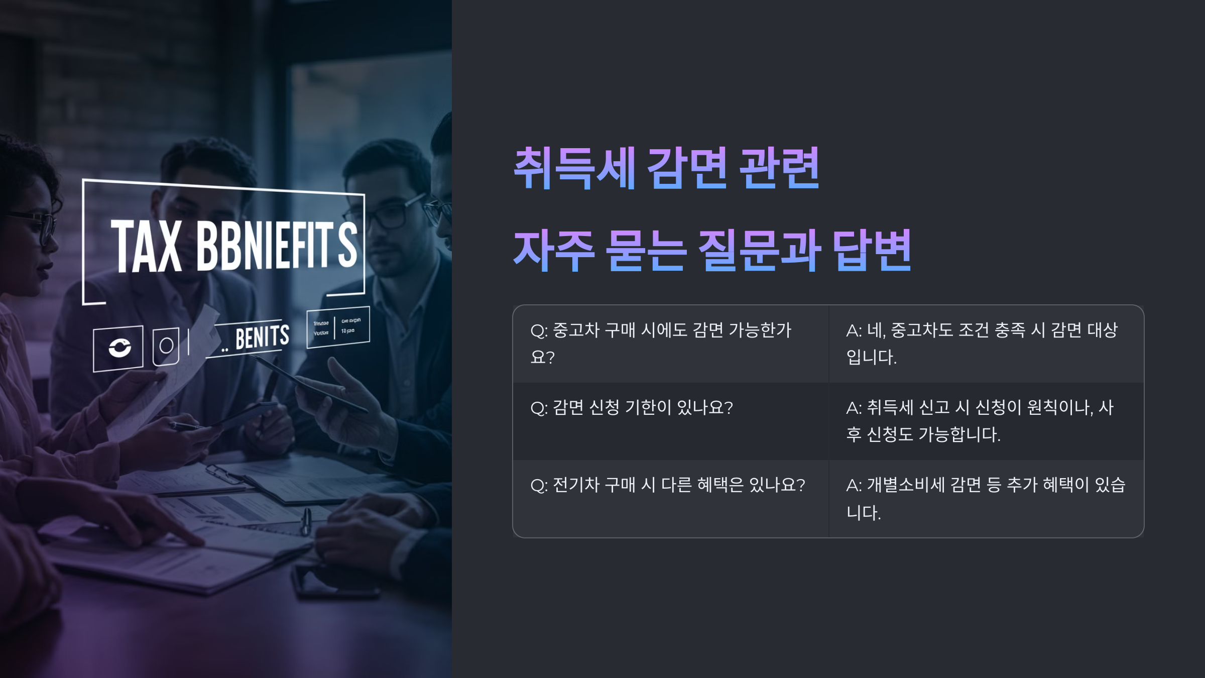 🚗 자동차 취득세 감면 혜택이 점진적으로 줄어들고 있는 만큼, 차량 구매 계획이 있다면 감면 혜택이 유지되는 시점을 고려하는 것이 중요해요. 다음 섹션에서는 자주 묻는 질문(FAQ)을 정리해볼게요! 🚀