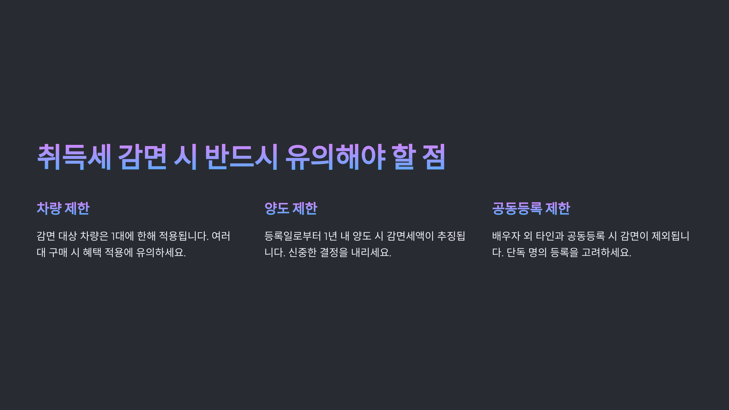 2️⃣ 감면 혜택은 1인 1대만 적용 – 동일 명의로 여러 대 등록 시 감면 불가.