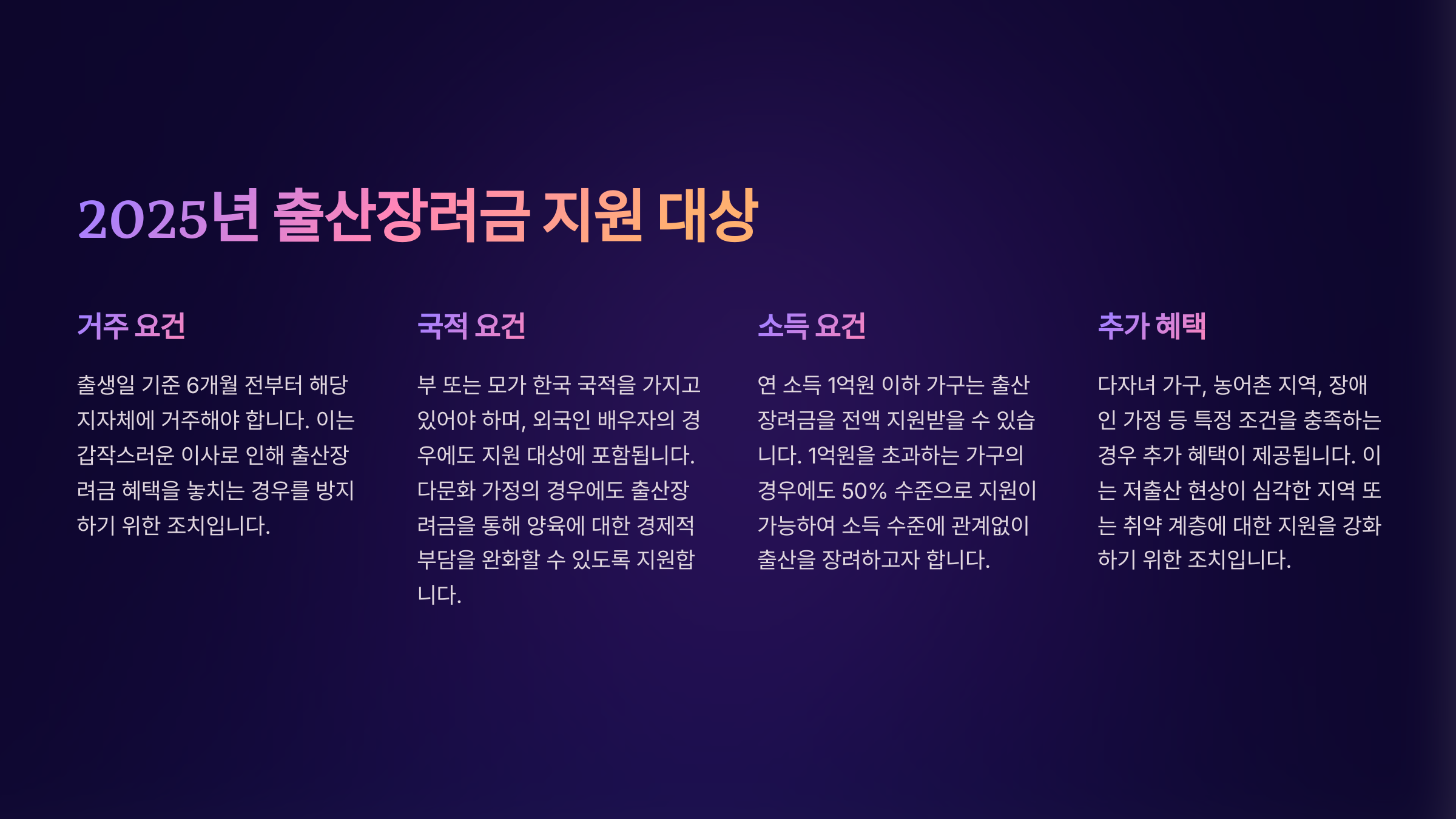 이제 2025년 출산장려금 지원 대상을 자세히 알아볼까요? 😊