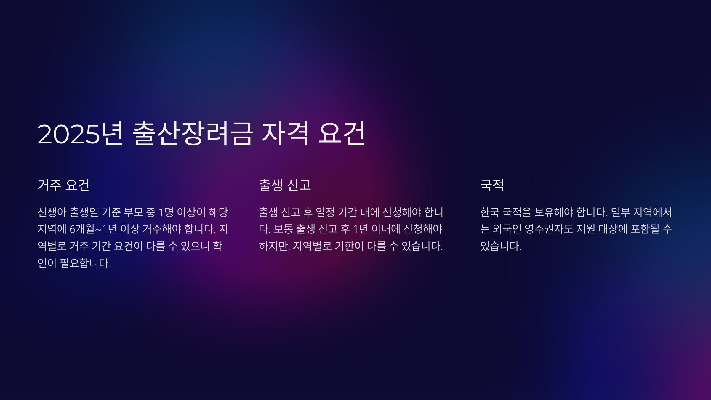다음 섹션에서는 2025년 출산장려금 자격 요건을 자세히 알아볼게요.