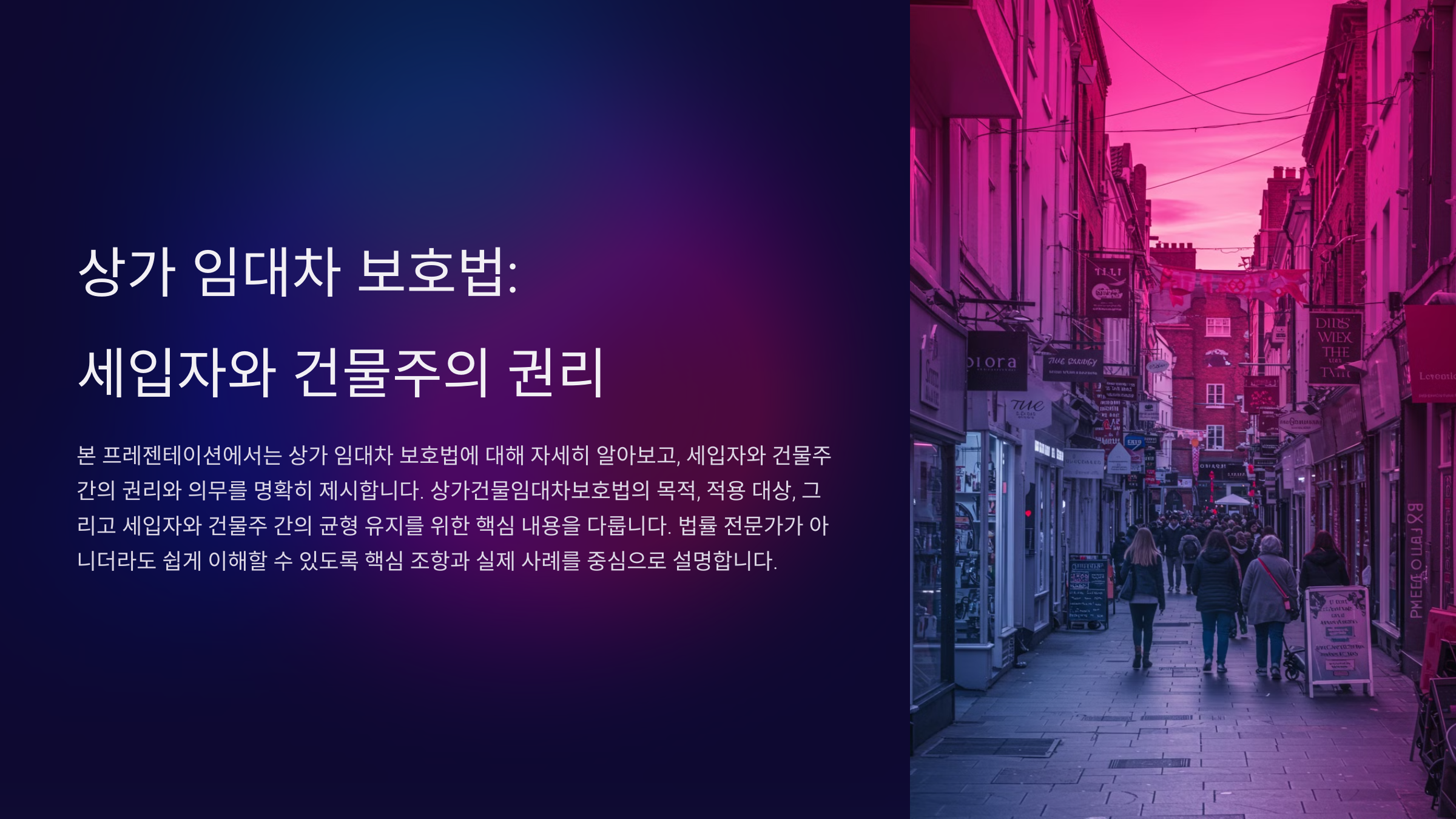 상가 임대차 보호법은 이름 그대로 임차인을 보호하기 위해 만들어진 법이에요. 하지만 단순히 세입자만을 위한 법이 아니라, 건물주의 재산권도 고려하면서 공정한 임대차 관계를 유지하는 것이 목표예요.