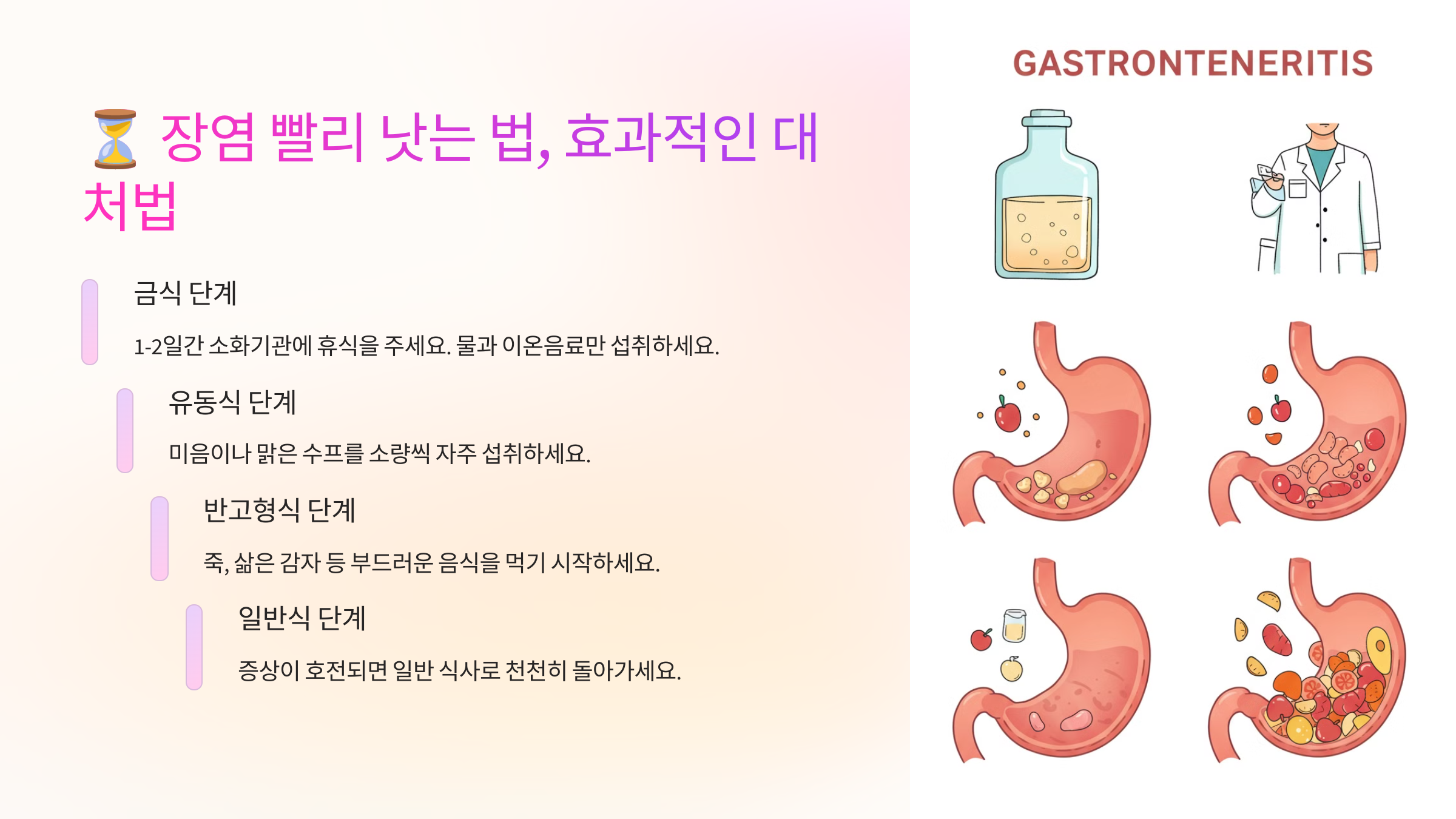 장염을 더 빠르게 낫게 하려면 아래 팁을 실천해 보세요! 😃