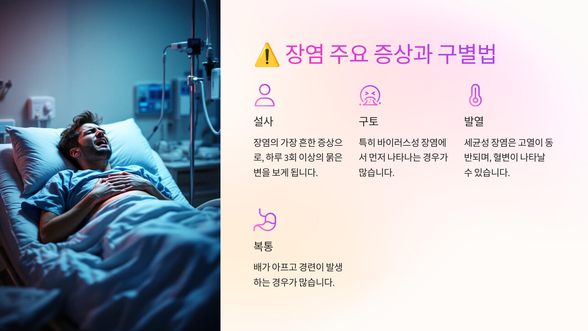 👉 태그: 장염 증상, 장염 치료, 장염 빨리 낫는 법, 장염 좋은 음식, 장염 예방, 장염 원인, 장염 전염성, 장염 생활습관, 장염 탈수, 장염 약