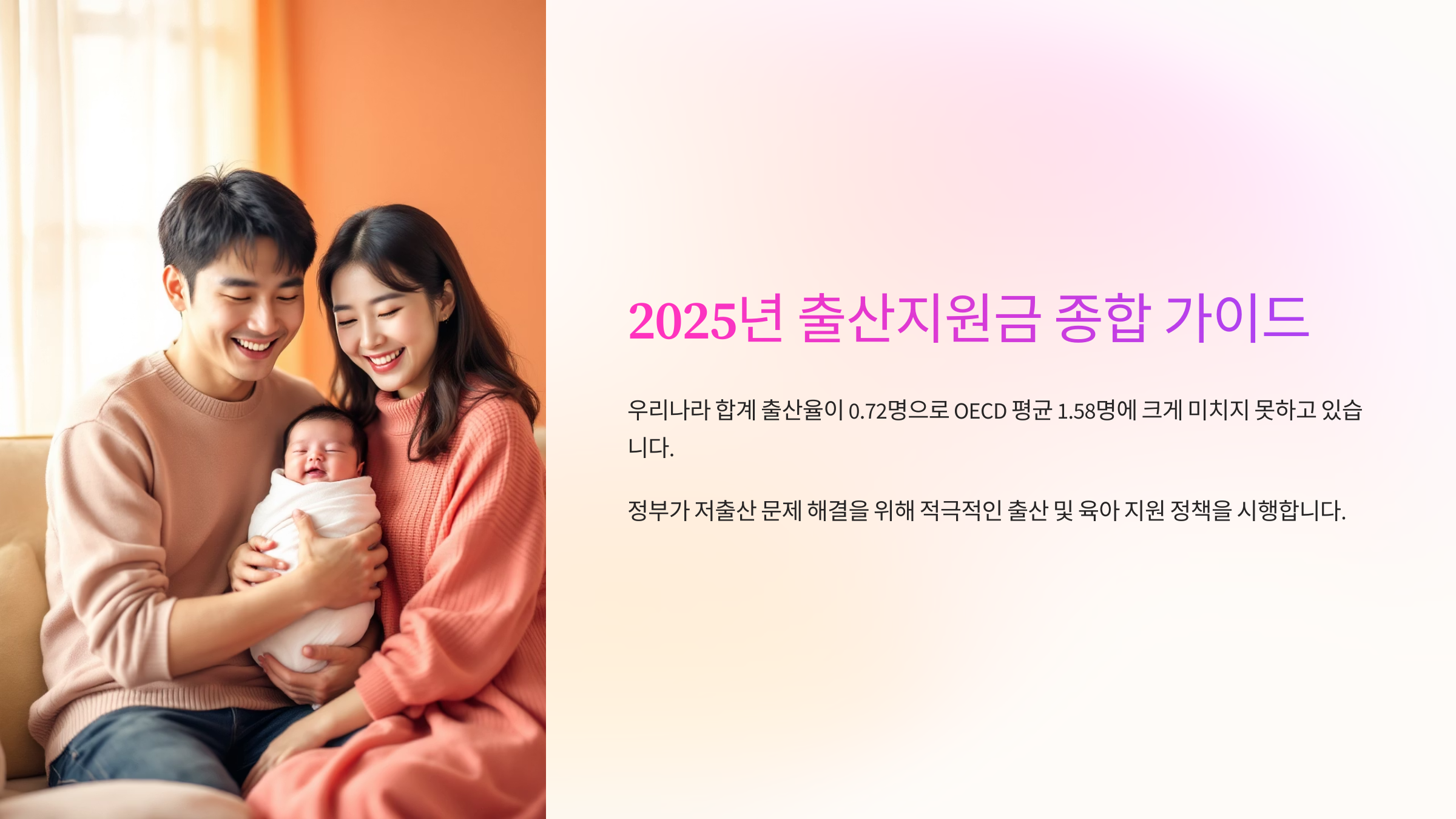 출산지원금은 저출산 문제 해결을 위한 정부의 대표적인 정책이에요. 기본적인 육아 초기 비용 부담을 줄이고, 출산을 장려하기 위한 목적으로 도입되었죠.