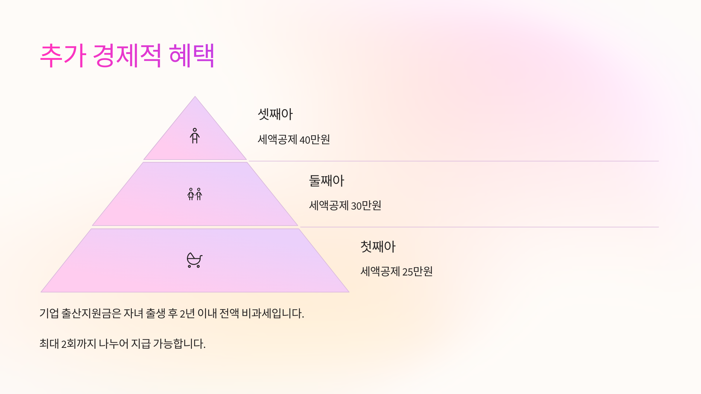 - 현금지원 (첫째~셋째 자녀별 금액 차등)