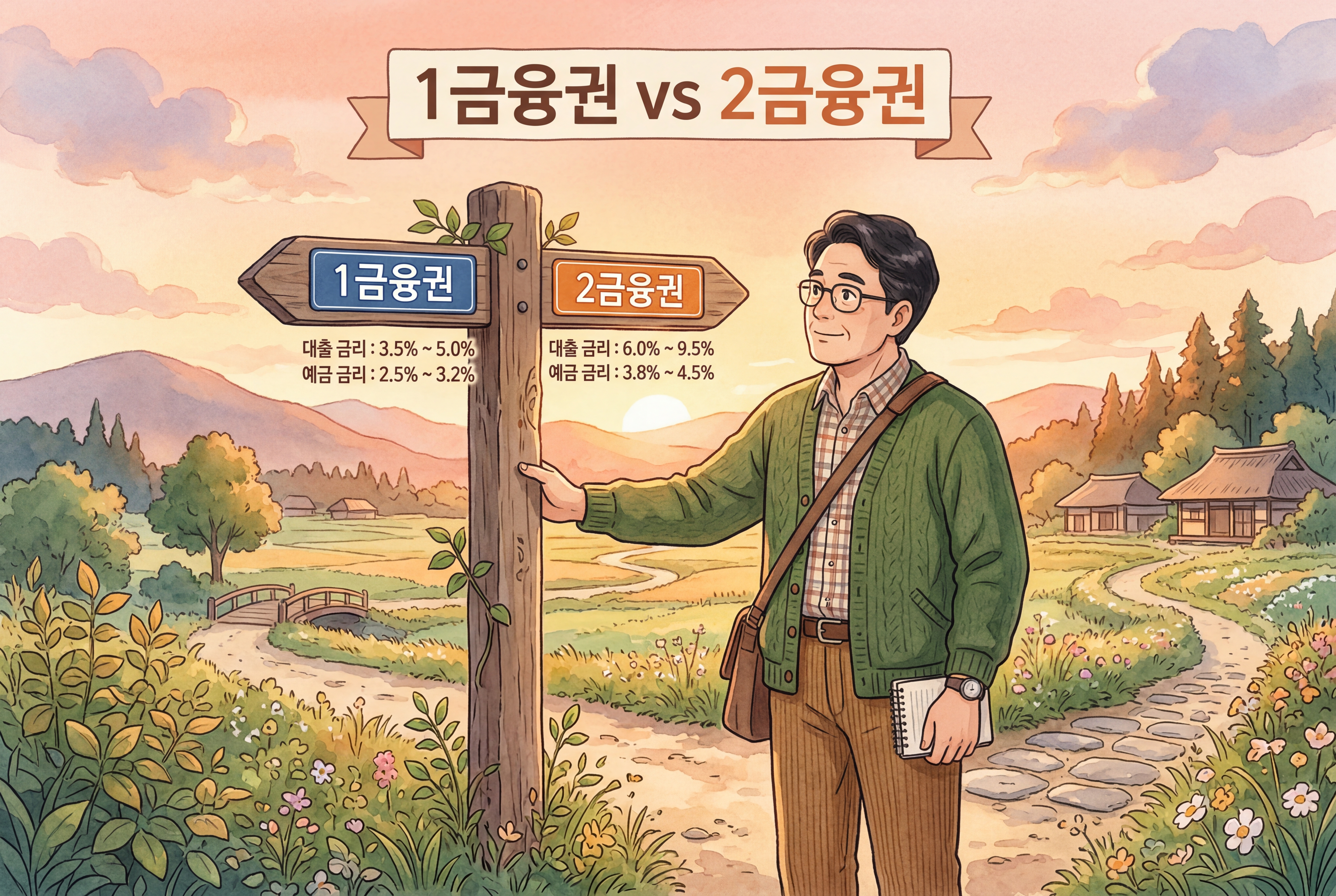 1금융권(시중은행)은 금리가 연 4~6%대인 반면, 2금융권(저축은행·캐피탈)은 연 8~15%까지 올라갑니다. 50대는 은퇴 후 상환 부담이 커지므로, 가능한 한 1금융권을 우선으로 알아보는 것이 원칙이에요.