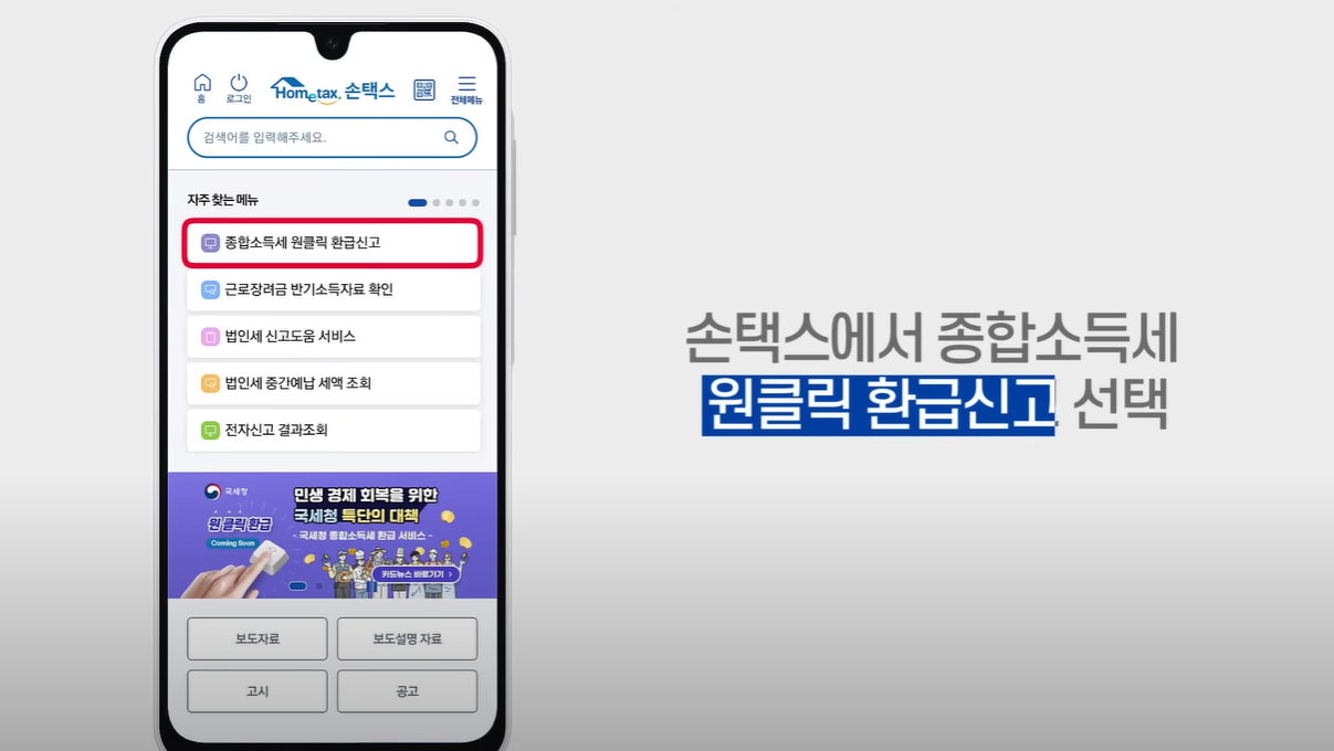 | 원클릭환급서비스 홈택스로 종합소득세 환급받는 법, 모바일로도 3분 컷! (2025 최신본) (0) | 2025.04.08 |