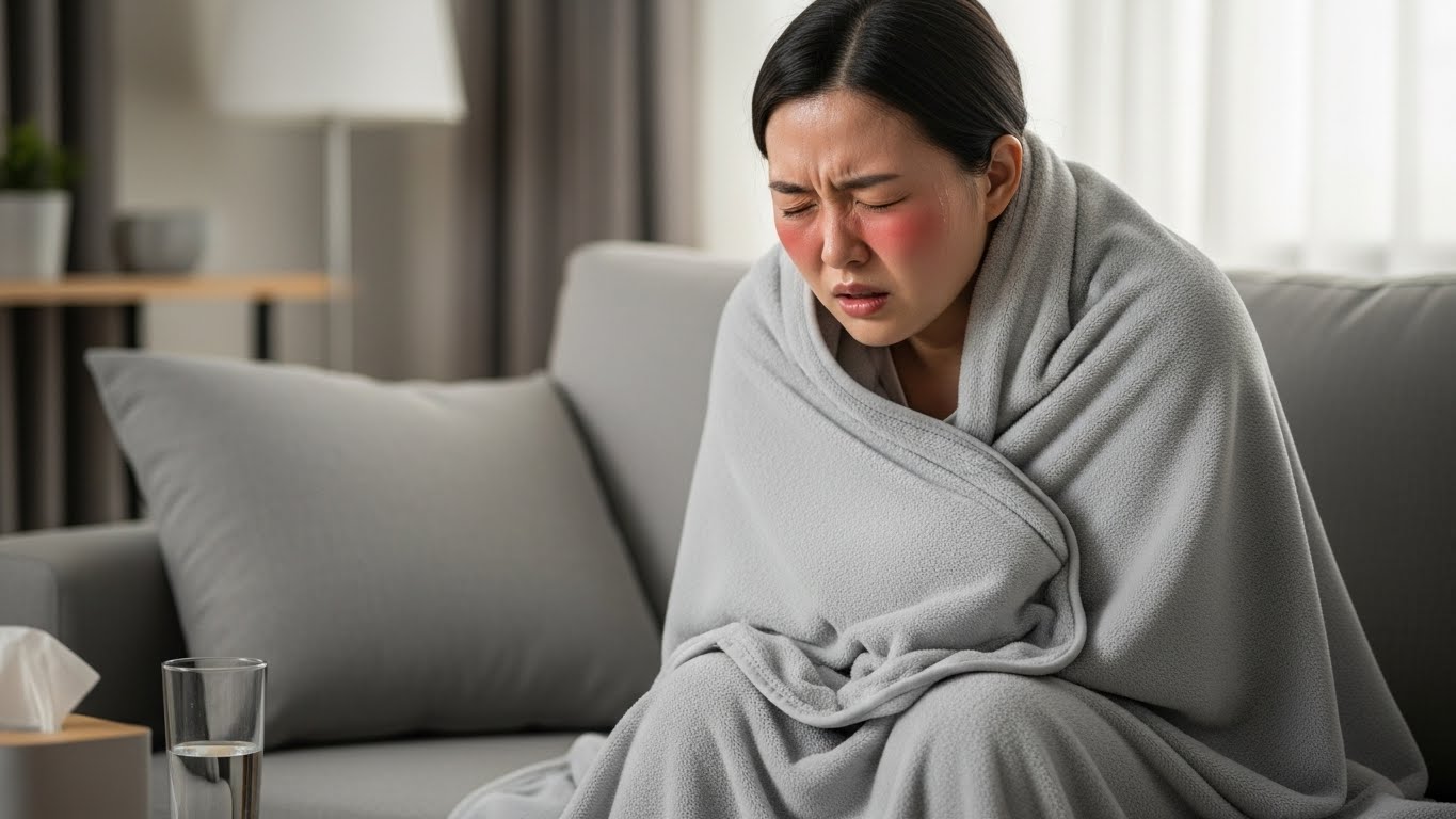 이것이 감기와 구별되는 가장 중요한 점입니다. 고열과 함께 나타나는 전신 증상으로는 심한 근육통, 두통, 피로감, 오한 등이 있습니다. 이러한 증상들은 초기 2~3일 동안 매우 심해서 일상생활이 거의 불가능할 정도입니다.